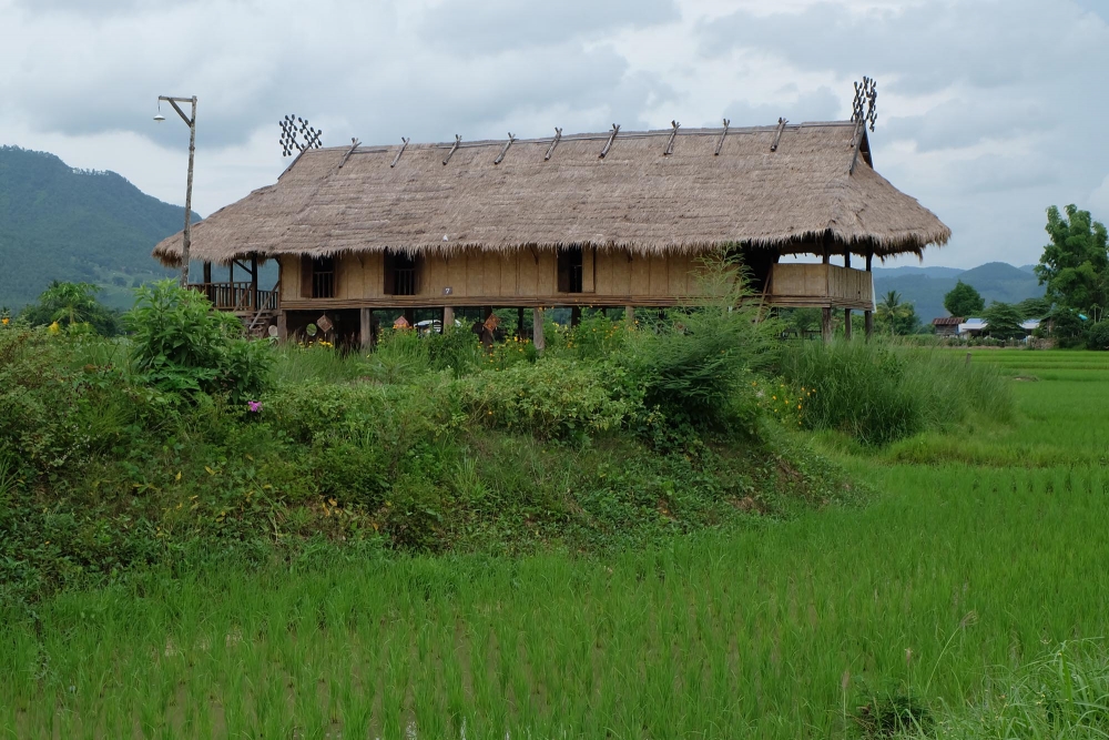 ไปอีกประมาณ 2 กิโลเมตร ก็จะพบ“พิพิธภัณฑ์หมู่บ้านวัฒนธรรมไทดำ”เด่นเป็นสง่าอยู่กลางทุ่งนาค่ะ