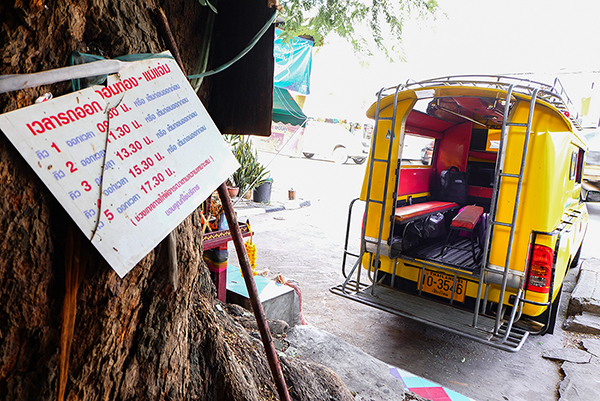 เราสองคนเดินแบบงงๆ หาคิวรถแดงที่จะไปลงที่ประตูเชียงใหม่ มีลุงคนนึงพยายามเดินเข้ามาชักชวน