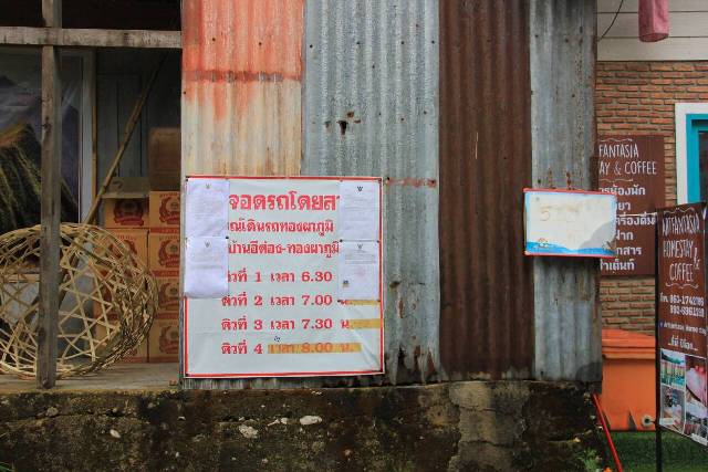 - ออกจากตลาดทองผาภูมิ เวลาประมาณ 10.30 น. (ถ้านั่งรถบขส. 999 จากกรุงเทพฯ - ด่านเจดีย์สามองค์ ต้องขึ้นรถเที่ยว 5.00 น.)