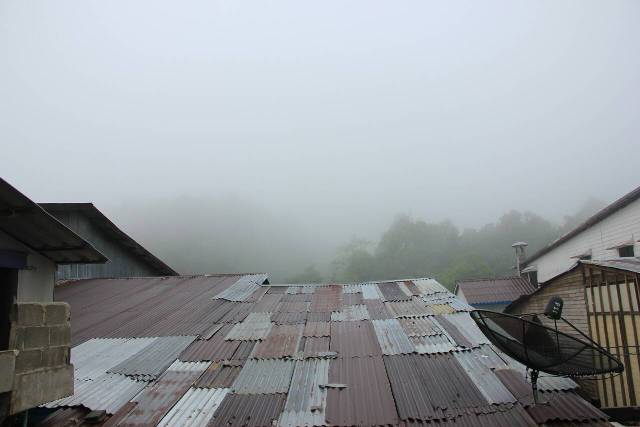 เช้าตรู่ ณ เมืองในหมอก หมอกๆๆๆๆๆๆเยอะมากคับ อยากเจอหมอกๆก็มา จากการสังเกตเห็นเลยว่าทุกๆบ้านจะมีผ้ายางพลาสติกปิดหน้าหมู่บ้าน พอถามได้ความว่า คุณหมอกเนี่ยมาไม่เป็นเวล่ำเวลา นึกอยากมามากๆก็มา มาน้อยๆก็มี บางทียกพวกกันลอยเข้าในบ้านแบบไม่ต้องเชื้อเชิญ บ้านไม้ชั้นเดียวที่เหมือนกันแทบทุกหลังคาเรือนจึงพร้อมใจกันใช้ผ้ายางพลาสติกปิดไว้กันหมอกเข้าบ้าน กันไม่ให้บ้านขึ้นราคับ