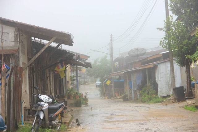 ฝนหยุดไปยังไม่ถึงครึ่งชั่วโมง คุณเธอกลับมาอีกครั้งมาแบบหนักกว่าเดิมคับ ทำเหมือนว่าพาความคิดถึงและเป็นห่วงจากใครมาส่งให้ก็ไม่อาจรู้ได้(อาจเป็นสาวจากฟิลิปปินส์..อิอิ) ชื่นใจจังนะคับ..ว่าไหม ชาวบ้านที่นี่บอกว่า อย่าถามว่าฝนจะตกไหม จะตกเมื่อไหร่ เพราะฝนตกไม่เคยจะนัดหมายบอกกล่าวล่วงหน้า คงเป็นเพราะได้อิทธิพลจากลมทะเลฝั่งอันดามันบ้าง ลมบกบ้าง กรมอุตุฯก็คงยากคาดเดา(นายสีนิลคิดเอาเอง)