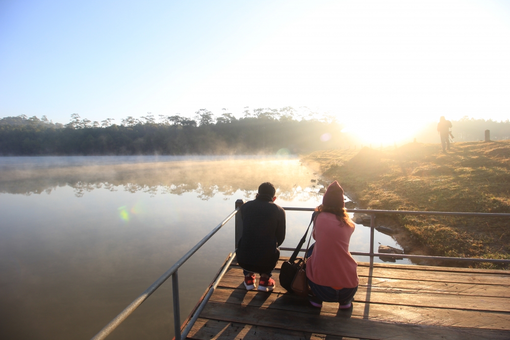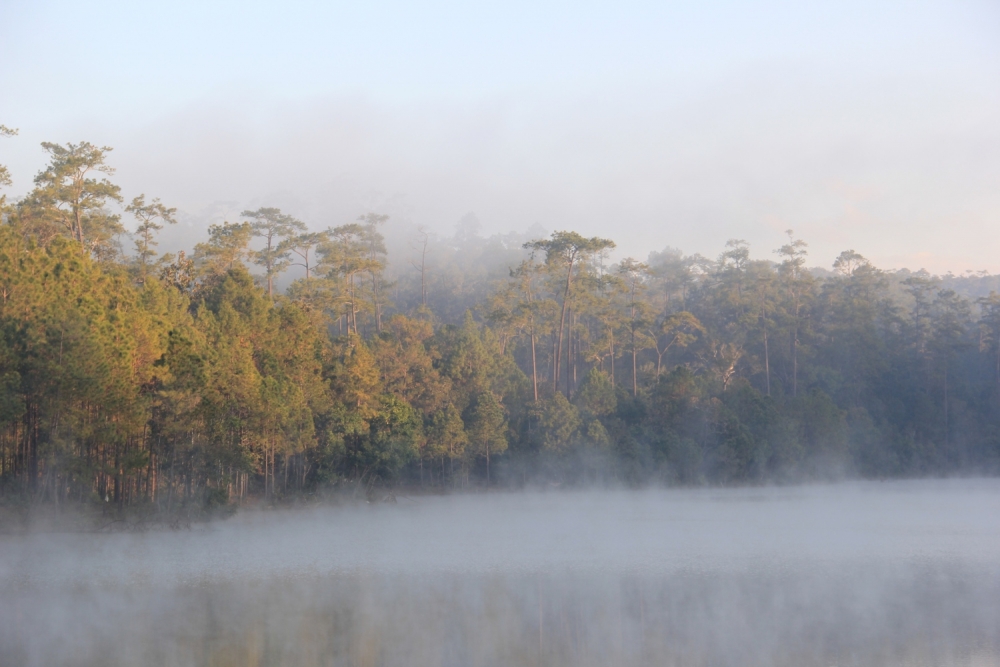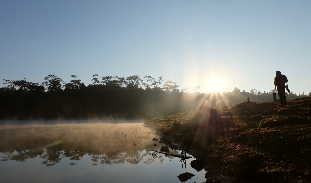 หมอกบนผิวน้ำกับแสงอาทิตย์ยามเช้า... เป็นบรรยากาศที่ฟินมากกกกก