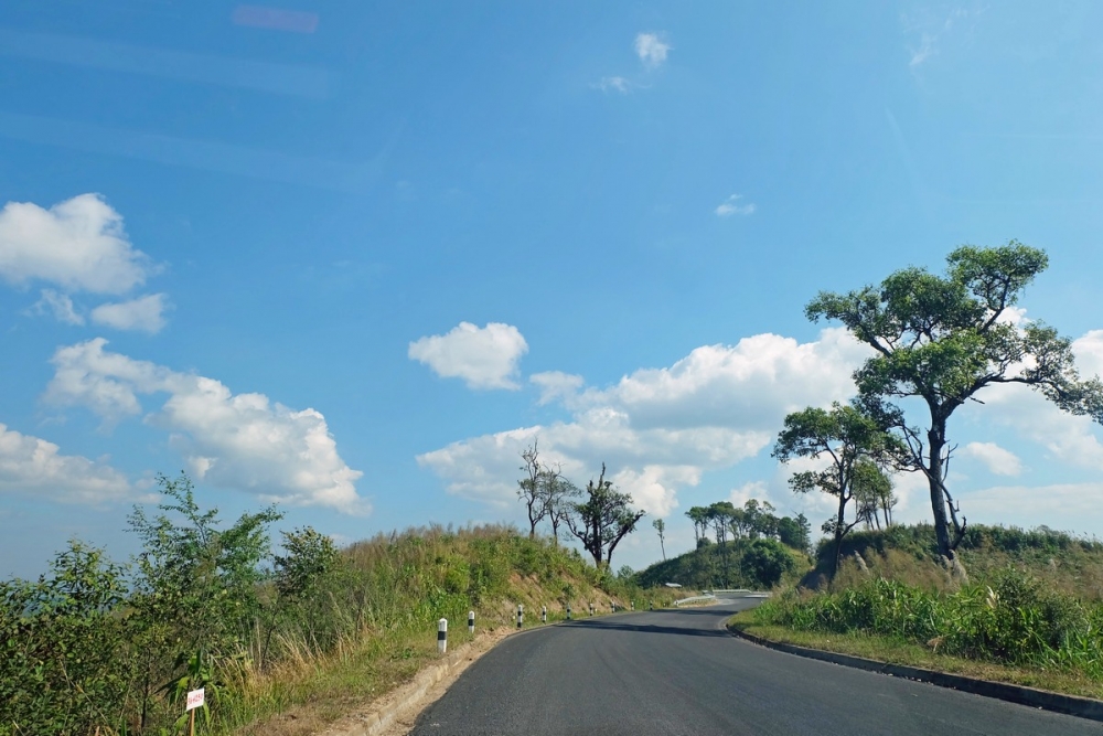หลังจากเดินทางออกจากหมู่บ้านแพมบก เราก็ออกเดินทางกันต่อเพื่อมายังบ้านเหมืองแร่ เพื่อเข้าสู่ถนนสายหลัก 1265 มุ่งหน้า อ.กัลยาฯ สภาพเส้นทาง ลาดยาง บางช่วงเป็นหลุมบ้าง แต่โดยรวมสภาพดี เส้นทางไม่ได้ชันมาก ขับสบายๆ เรื่อยๆ ชิลๆ ชมวิวป่าเปลี่ยนสี (ช่วงที่ไปคือต้นเดือน ก.พ. 2560)