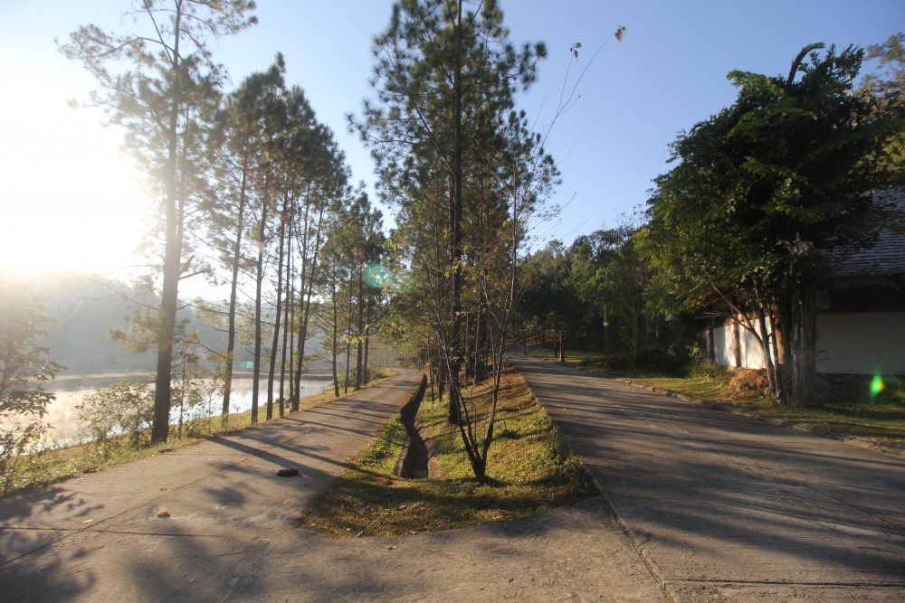 บรรยากาศยามเย็นบริเวณอ่างเก็บน้ำภายในโครงการหลวงบ้านวัดจันทร์