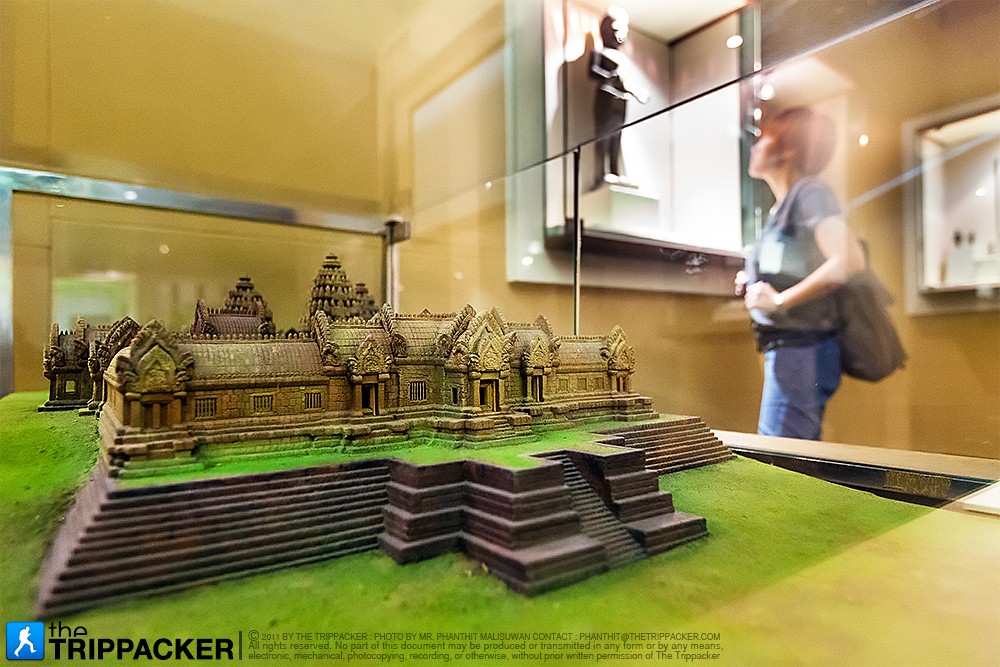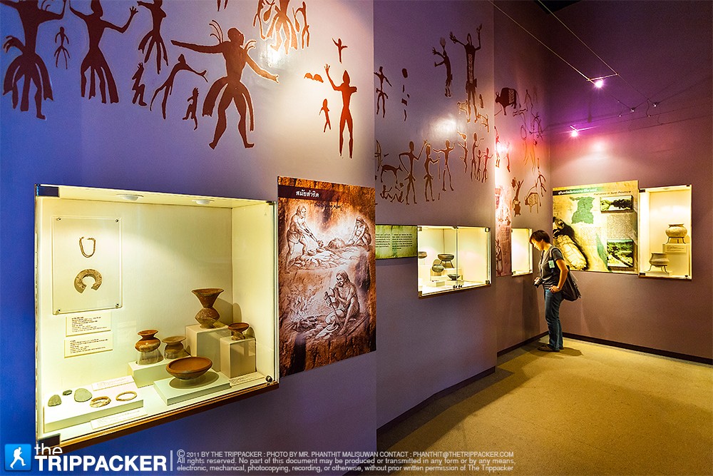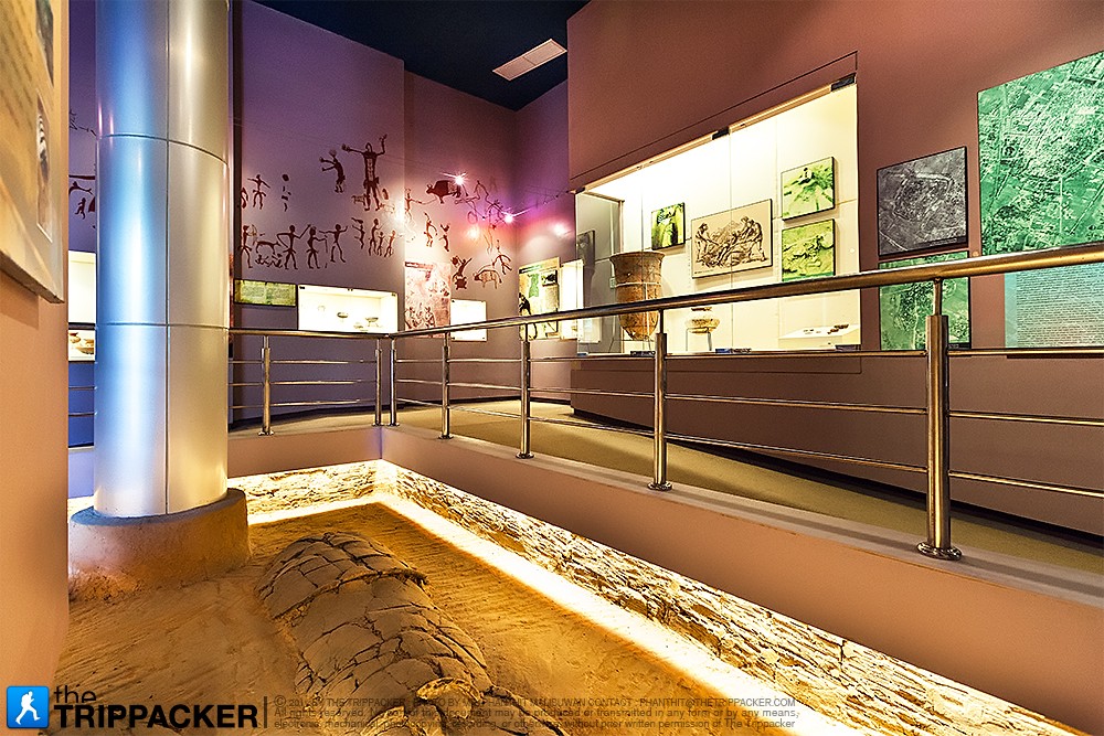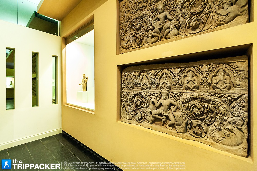 จากบริเวณโถงส่วนหน้าเราเดินต่อไปที่อาคารด้านหลัง ซึ่งเป็นส่วนจัดแสดงสิ่งของและเรื่องราวประวัติศาสตร์ของจังหวัดสุรินทร์ เริ่มกันตั้งแต่ยุคก่อนประวัติศาสตร์ สมัยวัฒนธรรมทวารวดี สมัยวัฒนธรรมขอม และสมัยวัฒนธรรมล้านช้าง-อยุธยา ซึ่งในแต่ละยุคแต่ละสมัยก็มีหลักฐานทางประวัติศาสตร์ปรากฏให้เห็นอย่างเด่นชัดผ่านทางข้าวของเครื่องใช้ต่างๆ ที่ขุดค้นพบในจังหวัดสุรินทร์ รวมถึงศิลปะขอมที่เราจะได้เห็นจาก “ทับหลัง” ประตูจำลอง รูปสลักหิน ลวดลายวิจิตรซึ่งยังคงความสมบูรณ์สวยงามมากๆ สำหรับไฮไลต์ของส่วนจัดแสดงนี้ต้องอย่าพลาดชม ทับหลังสองชิ้นที่ได้มาจากปราสาทศีขรภูมิ เป็นภาพพระศิวะร่ายรำในท่วงท่าอันอ่อนช้อยงดงาม ซึ่งตัวทับหลังทั้งสองชิ้นนี้ยังคงความสมบูรณ์ไว้มากๆ นอกจากนี้ยังมีแบบจำลองโบราณสถานอย่าง “ปราสาทศีขรภูมิ” และ “ปราสาทตาเมือนธม” ให้ได้ชมด้วย เราใช้เวลาเดินชมห้องนี้กันอยู่นานพอสมควรเลย เพราะอดทึ่งไม่ได้กับศิลปะขอมอันวิจิตร รวมถึงข้าวของเครื่องใช้ที่แสดงให้เห็นถึงอารยธรรมที่เจริญรุ่งเรืองมากในอดีต โบราณวัตถุบางชิ้นมีป้ายกำกับบอกให้รู้ถึงช่วงปีที่ถูกผลิตขึ้นมา นับนิ้วคำนวนในใจแล้วก็ต้องตกใจว่าข้าวของเครื่องใช้บางชิ้นที่เราเห็นในปัจจุบันมีวิวัฒนาการยาวนานมากขนาดนี้เลยหรือ