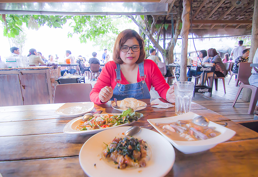 หลังจากเข้าที่พัก จัดแจงสัมภาระเข้าที่เรียบร้อย ได้เวลาอาหารเย็นพอดี พวกเราออกไปจับจองพื้นที่กินข้าวเย็นกัน ณ ร้านอาหารวิวยอ ศรีปากประ รีสอร์ท