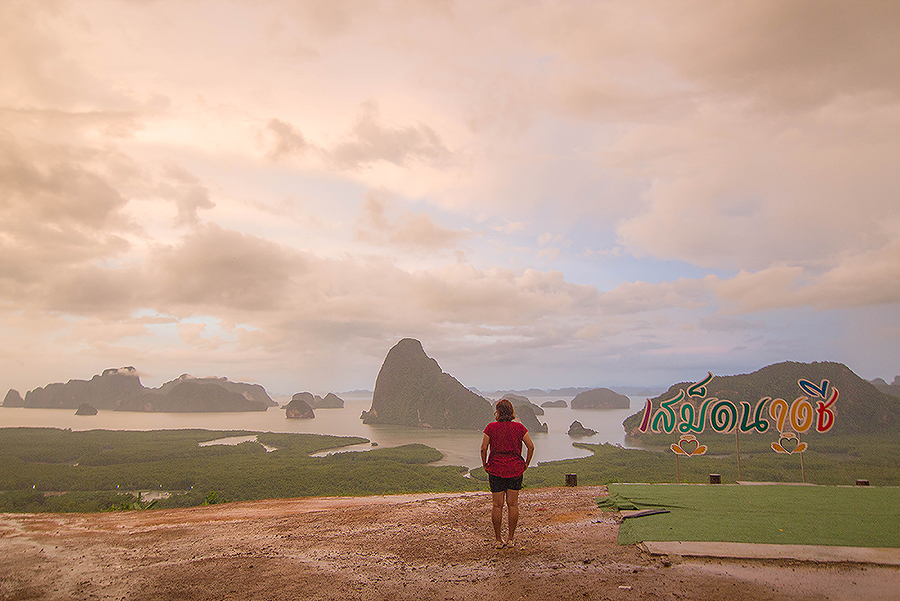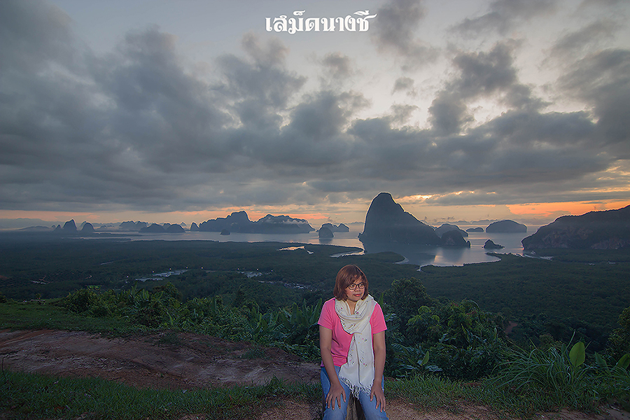 พออกจากสระมรกต พวกเราก็เดินทางต่อไปยังเสม็ดนางชี จ.พังงา ต่อ ขับรถไป พักรถไป เป็นระยะ ไม่รีบร้อน ถึงที่หมายประมาณ 4 โมงเย็น เราก็ไปติดต่อขึ้นจุดชมวิว  สำหรับคนที่อยากออกกำลัง  สามารถเดินขึ้นจากลานจอดรถไปยังจุดชมวิวได้เลยครับ ส่วนพวกเราใช้บริการรถกระบะ 4X4 พาขึ้น เนื่องจากมีสัมภาระพอสมควร เพราะขึ้นไปนอนค้างคืนบนจุดชมวิว