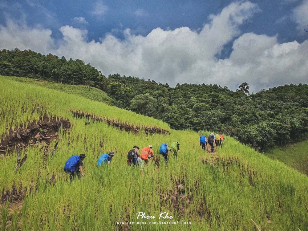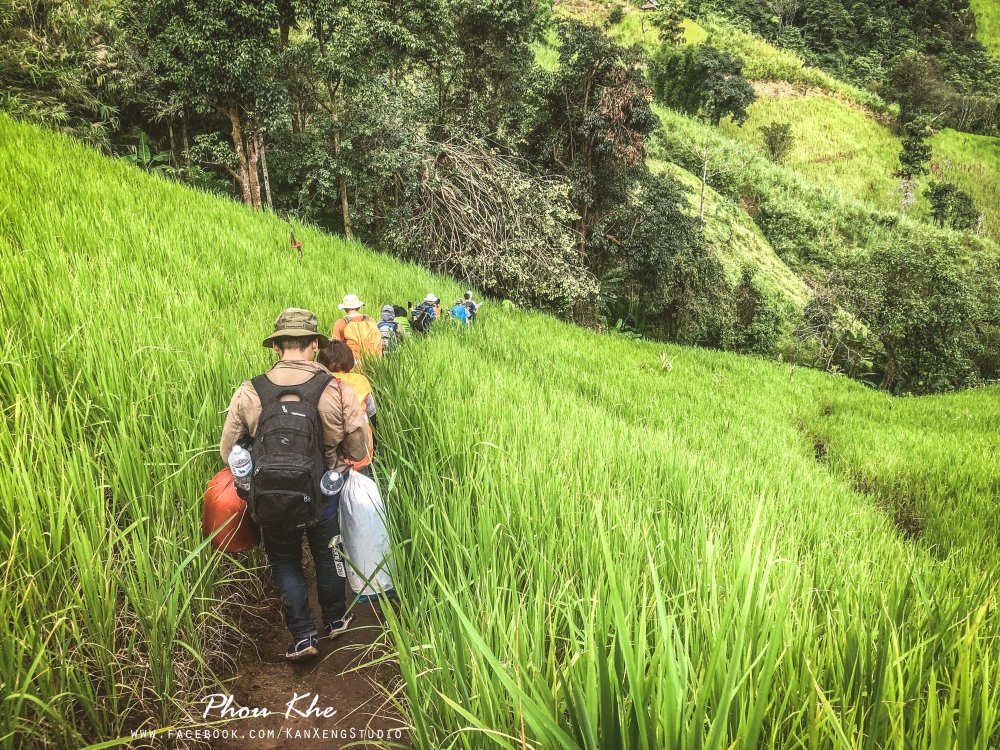 >> การเดินเท้าก็ยังคงเดินขึ้นเดินลงเขา เดินชมทุ่งข้าวอยู่ประมาณ 2-3 ลูกได้ ก่อนเดินเข้าป่าแบบ 100 เปอร์เซ็นต์