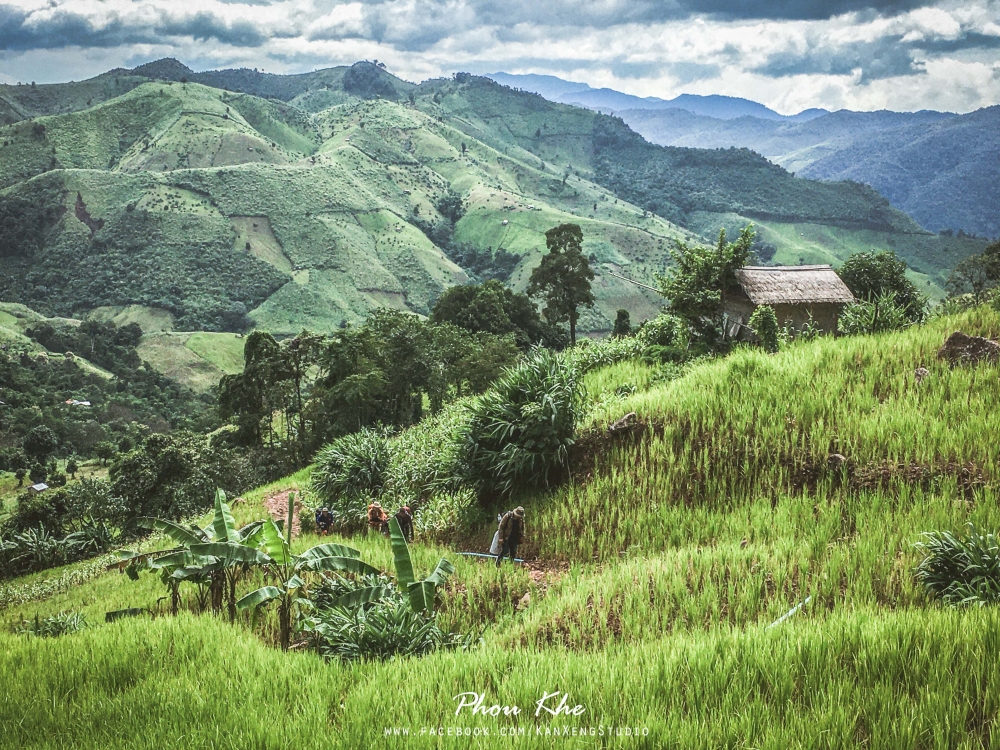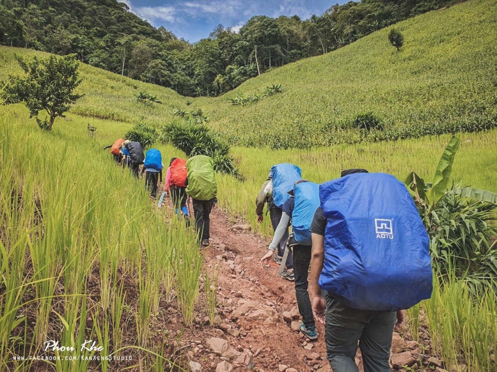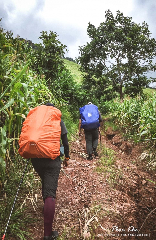 >> บรรยากาศระหว่างทางช่วงแรกๆ เป็นทิวเขาทุ่งนา ทุ่งข้าวที่ชาวขึ้นมาปลูกกัน ช่วงแรกของการเดินยังไม่โหดมาก แต่ก็เหนื่อยใช้ได้เลยนะ จำไม่ได้ว่ากี่กิโลแต่รู้ว่าไกล