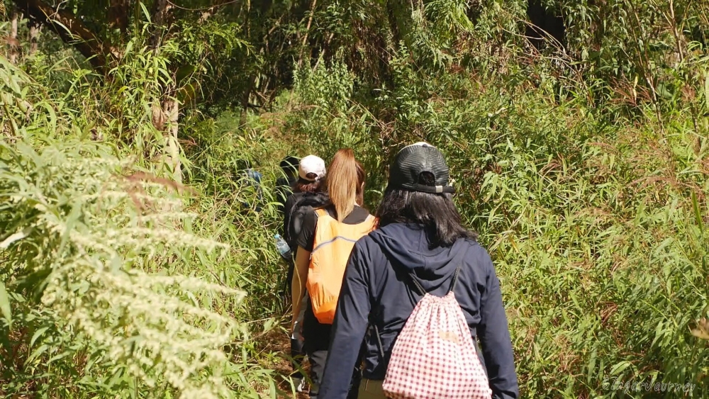10.00น. ใช้เวลาเกือบหนึ่งชั่วโมงครึ่งเราก็มาถึงจุดที่ทำการ เข้าห้องน้ำบอกลาส้วมกันให้เรียบร้อย แล้วก็ลุยกันโล้ดดด ทริปนี้เรามีสมาชิก 9คน(เป็น 9 คนที่มาด้วยกันได้แบบงงๆ รู้จักกันยังไงไม่รู้ แต่มันสนุกดีนะ) คนนำทาง 1 คน และลูกหาบ 3 คน