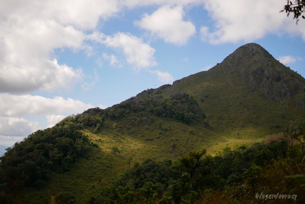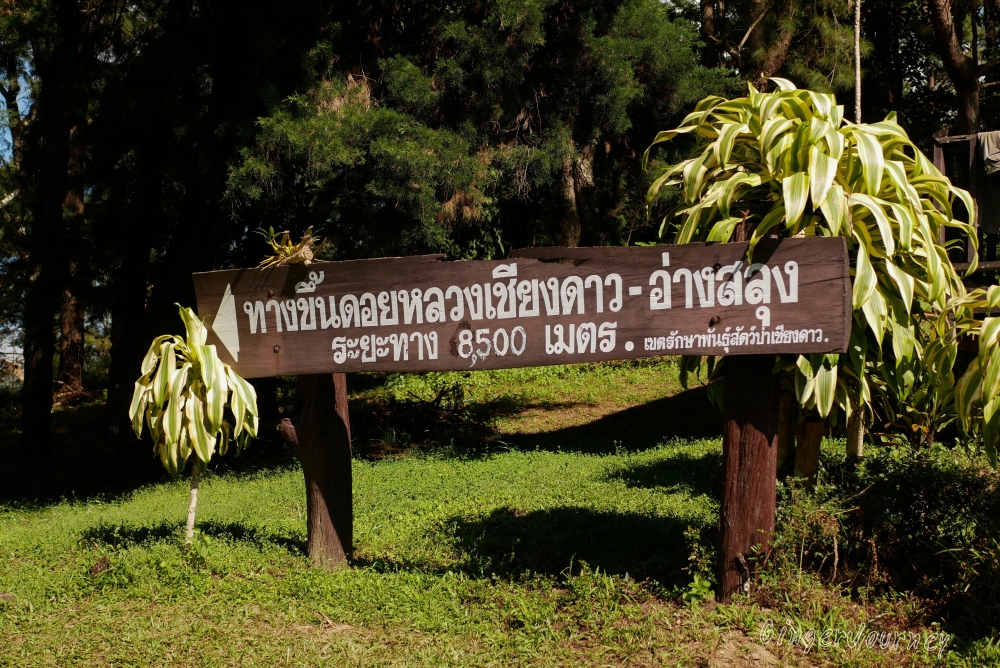 ทางขึ้นลงไปดอยเชียงดาวมี 2 ทาง เด่นหญ้าขัด(ระยะทาง8.5กิโล)และปางวัว(ระยะทาง6.5 กิโล) เนื่องจากทางเด่นหญ้าขัดชันน้อยกว่าและมีวิวให้ดูเจริญหูเจริญตามากกว่า เราไม่ได้จะมาเดินเอาโล่ เราก็ต้องขึ้นเด่นหญ้าขัดตามกระแสสังคมสิคะ (หมายเหตุแต่ตอนนั่งรถไปเด่นหญ้าขัดไกลกว่าและเส้นทางก็เป็นลูกรังละเกิ๊นน ไอ้ข้าวเช้าที่กินมาย่อยหมดพอดีจ่ะ)