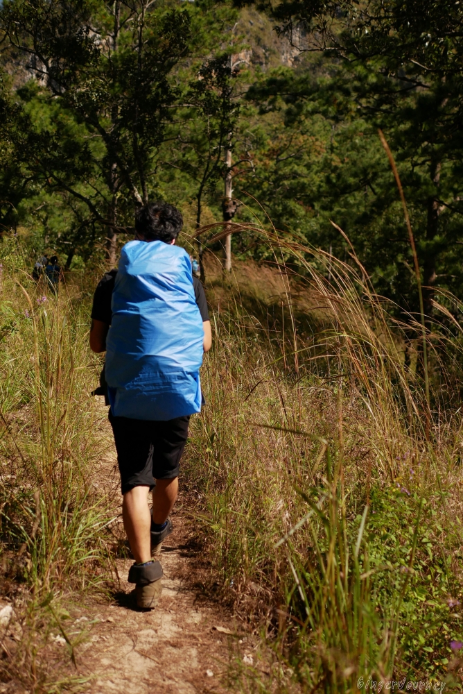 ช่วงแรกๆทางเดินก็จะเป็นป่าสนหน่อยๆ ร่มๆเย็นๆ พอเริ่มเดิน เหงื่อก็มา แดดก็ส่อง แต่ก็ต้องถือว่าเป็นทางที่เดินสบายไม่ค่อยชันมาก