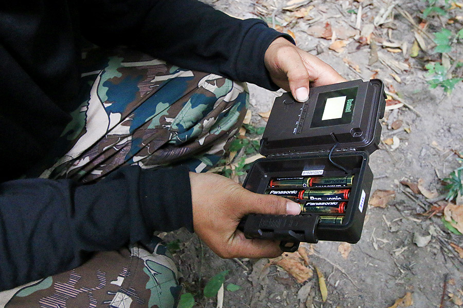 หนึ่งในภารกิจเสริมของเจ้าหน้าที่นำทางพวกเราในครั้งนี้คือติดกล้องถ่ายภาพสัตว์ป่าบนทางขึ้นยอดดอยครับ นอกจากติดตั้งยังต้องเข้ามาเปลี่ยนแบตเตอรี่และเม็มโมรี่การ์ดทุกสิบห้าวันด้วยนะ ตัวนี้เป็นตัวที่ห้านับจากที่ขึ้นมาติดตั้งครั้งล่าสุดเมื่อเดือนก่อน ใครบอกว่าเป็นเจ้าหน้าที่พิทักษ์ป่าไม่เห็นต้องทำอะไร ลองคิดใหม่ได้ครับ