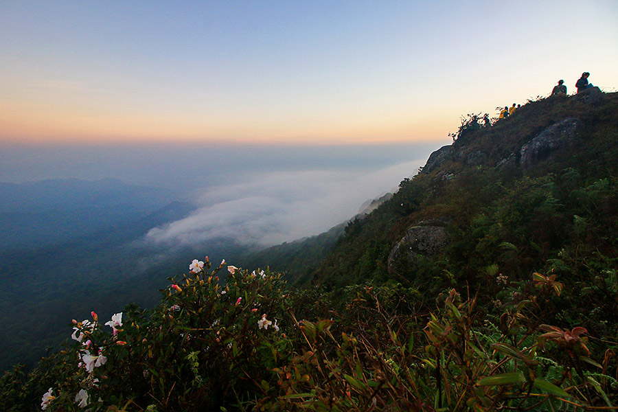พอฟ้าเริ่มสว่างขึ้นผมค่อยเดินไปยอดโมโกจู สารภาพเลยว่าหลังจากฟ้าหม่นเย็นเมื่อวาน วันนี้ค่อนข้างโล่งใจที่ฟ้าเปิดกระจ่างอีกครั้ง และหลังถ่ายรูปโช้ะแช้ะได้สักพัก สิ่งที่ทุกคนฝันอยากเห็นก็มีเค้าความจริง หมอกขาวเริ่มไหลตามลมผ่านมาทางร่องเขาทุกทิศทุกทาง