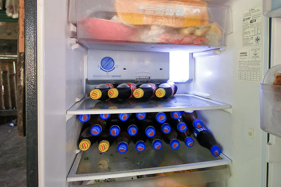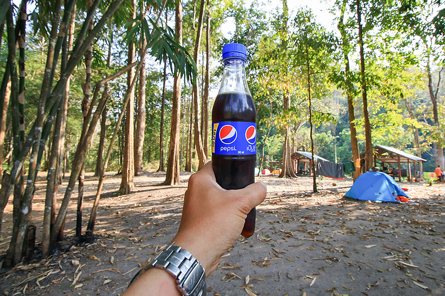 ในที่สุด 16.10 น. สิ่งที่เห็นค่อยทำให้ยิ้มออก แคมป์แม่กระสาอยู่ตรงหน้า และสิ่งที่ทุกคนทำเหมือนกันเป๊ะคือสิ่งนี้... โค้ก เป๊ปซี่ จัดกันไปให้หายเหนื่อยสิครับจะรออะไร เจ้าหน้าที่แช่ตู้เย็นรอไว้อย่างรู้ใจ ขวดละสิบห้าบาทเท่านั้นไม่ได้ชาร์จเพิ่มมากมาย