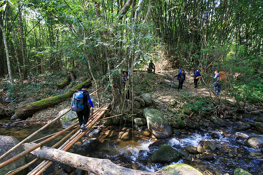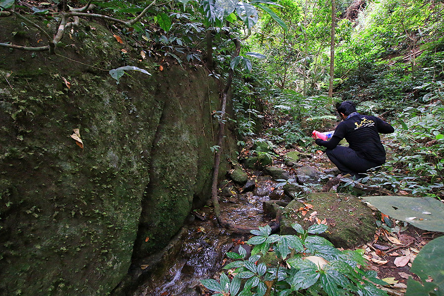 อีกสักสิบห้านาทีเราจะมาถึงคลองสอง เป็นลำธารสุดท้ายก่อนขึ้นแคมป์ตีนดอย กรอกน้ำให้เต็มที่เท่าที่จะแบกไหว แต่ไม่ต้องเยอะเกินไปนะครับเพราะลูกหาบจะเป็นคนจัดการเอาขึ้นไปให้เราพอสมควรอยู่แล้ว