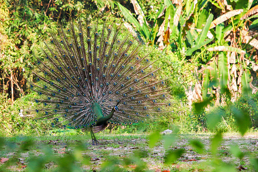 ที่แม่กระแสมีนกยูงอยู่สามตัว เจ้าตัวเมียค่อนข้างหวงถิ่นไปถ่ายรูปใกล้ๆ ระวังโดนวิ่งไล่ เพื่อนในกลุ่มคนหนึ่งโดนจิกได้เลือดมาแล้ว ส่วนนกกก (นกเงือก) ที่เชื่องๆ อยู่ที่นี่ เจ้าหน้าที่บอกว่าตายไปแล้วครับ โดนไฟดูดที่สถานีควบคุมไฟป่า... เศร้าเลย