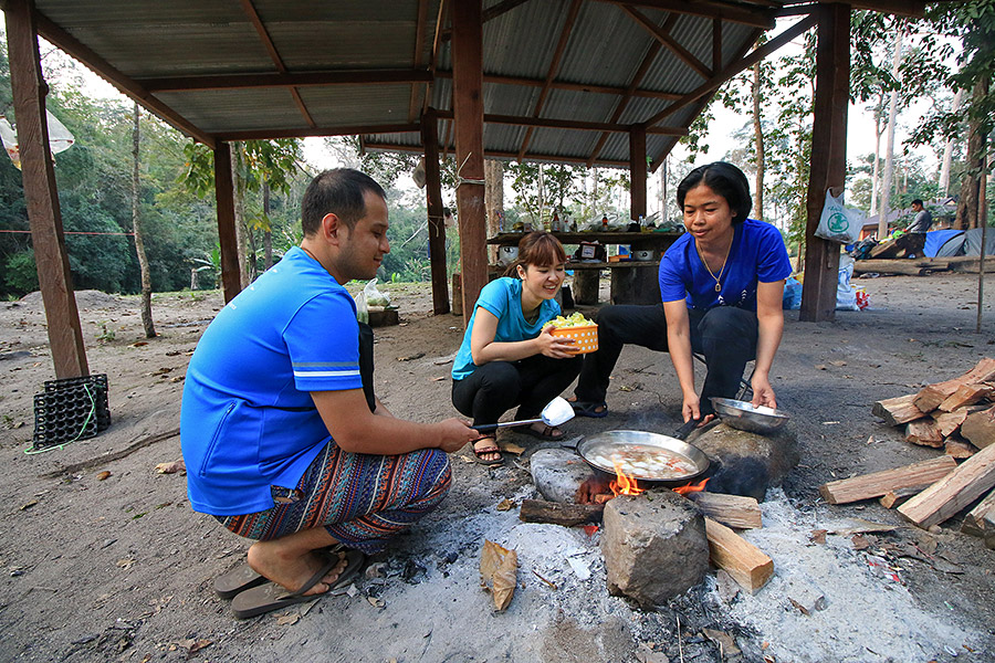เรื่องอาหารการกินโชคดีที่กรุ๊ปเรามีแม่ครัวพ่อครัวหัวป่าก์ เลยอยู่ดีกินดีมาก ทุกอย่างตระเตรียมมาอย่างเพียบพร้อม กินดีอยู่ดียิ่งกว่าที่บ้านเสียอีก (ฮา...)