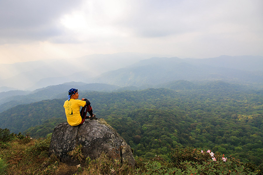 สิ่งหนึ่งที่ผมชอบมากบนยอดโมโกจูคือเมื่อมองรอบทิศทางแล้ว เราไม่เห็นบ้านเรือนผู้คน หรือสิ่งปลูกสร้างฝีมือมนุษย์แม้แต่นิดเดียว วน 360 องศา เห็นแต่ป่าสีเขียวสมบูรณ์ ห้วยขาแข้งอยู่ทางนั้น คลองลานอยู่ทางนี้ ทุ่งใหญ่นเรศวรอยู่ทางโน้น รวมกันแล้วเป็นป่าใหญ่ นั่นทำให้เข้าใจอย่างดีว่าทำไมผืนป่าตะวันตกถึงควรค่าแก่การหวงแหนรักษายิ่งนัก