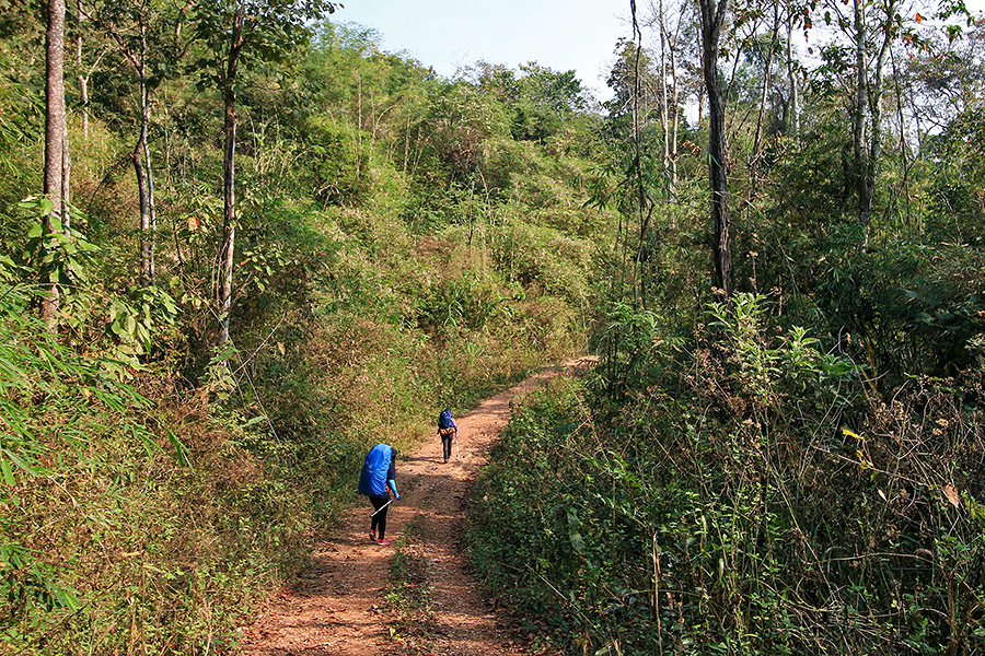 ผมออกจากแคมป์เป็นกลุ่มสุดท้าย เดินตามถนนดินแดงไปเรื่อยๆ เรื่อยๆ เรื่อยๆ แซงคนอื่นบ้าง โดนคนอื่นแซงบ้าง ถอนหายใจและหัวเราะให้กันตามประสา