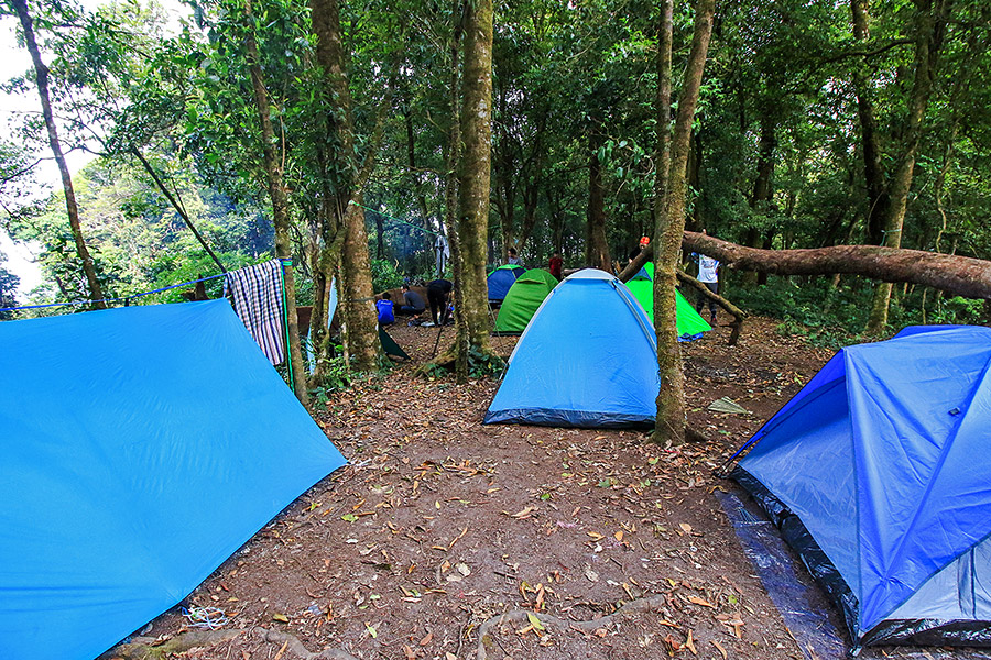 พอถึงแคมป์ก็จะเหลืออีกกิโลเดียวเท่านั้นคือยอดโมโกจู แต่ก่อนอื่นต้องจัดการเรื่องที่หลับที่นอนและที่ตั้งวง (กินข้าว) เต็นท์ก็ได้ เปลก็สบาย แล้วแต่ความชอบเลย
