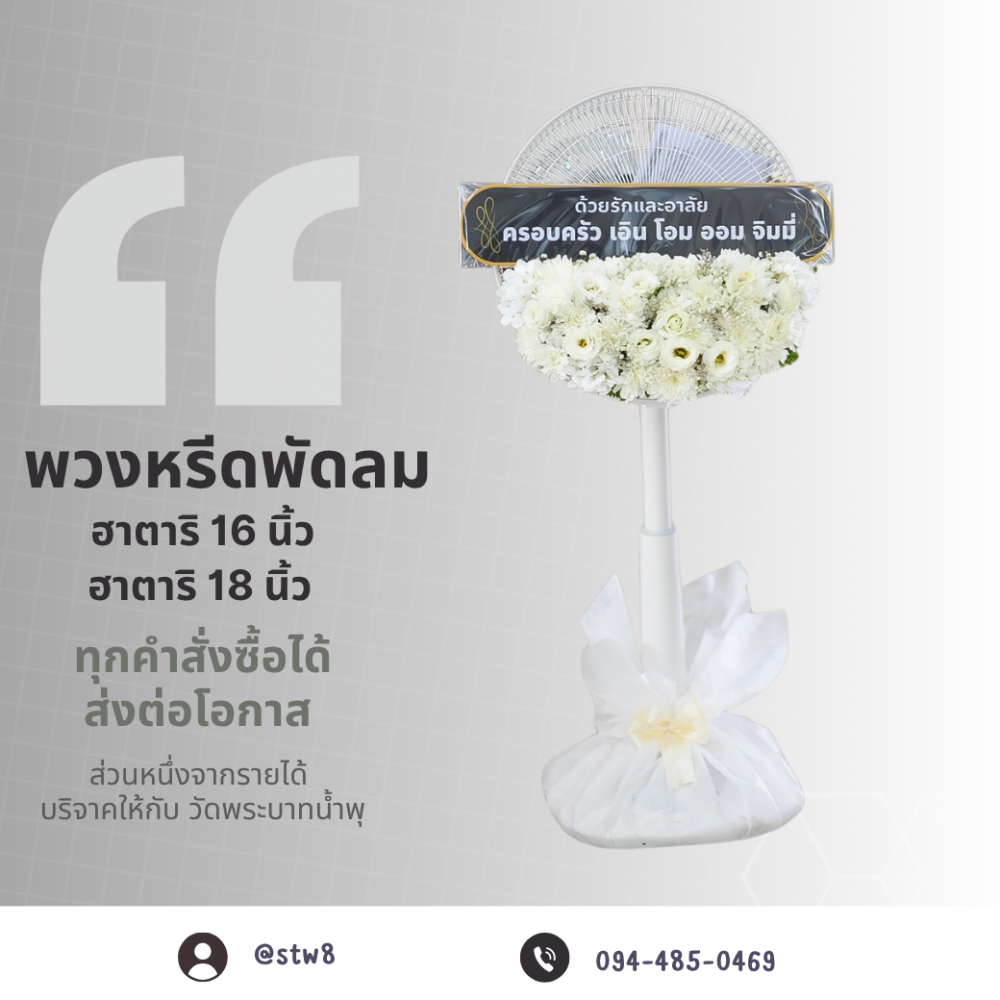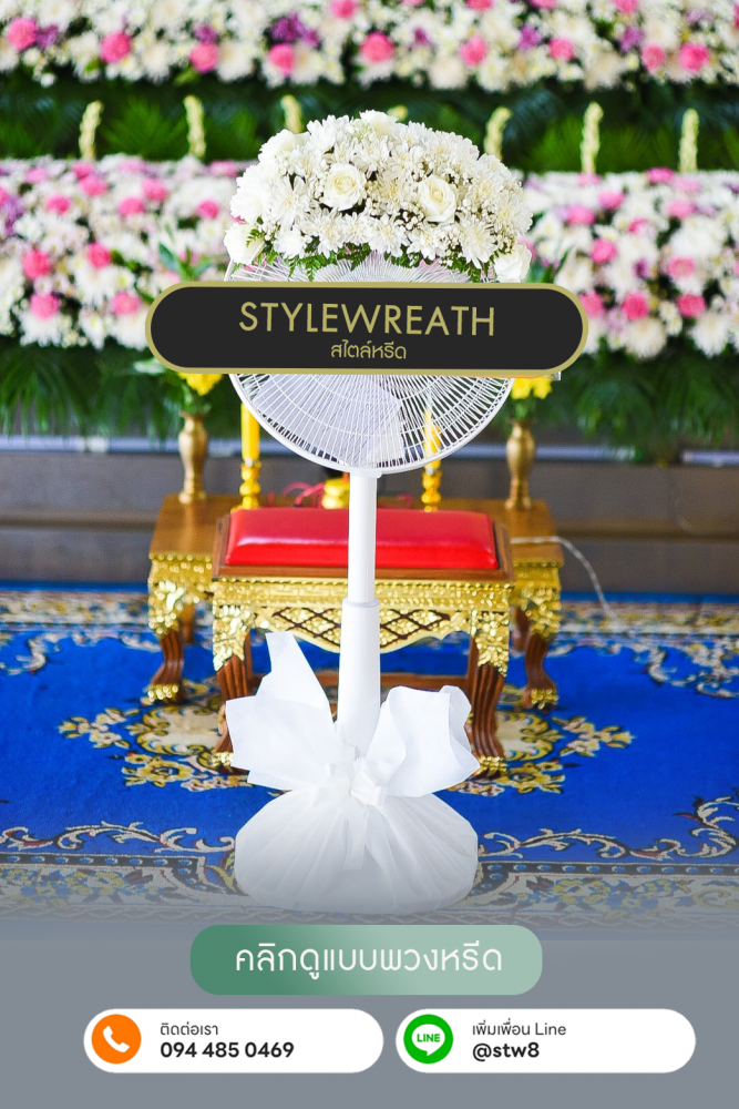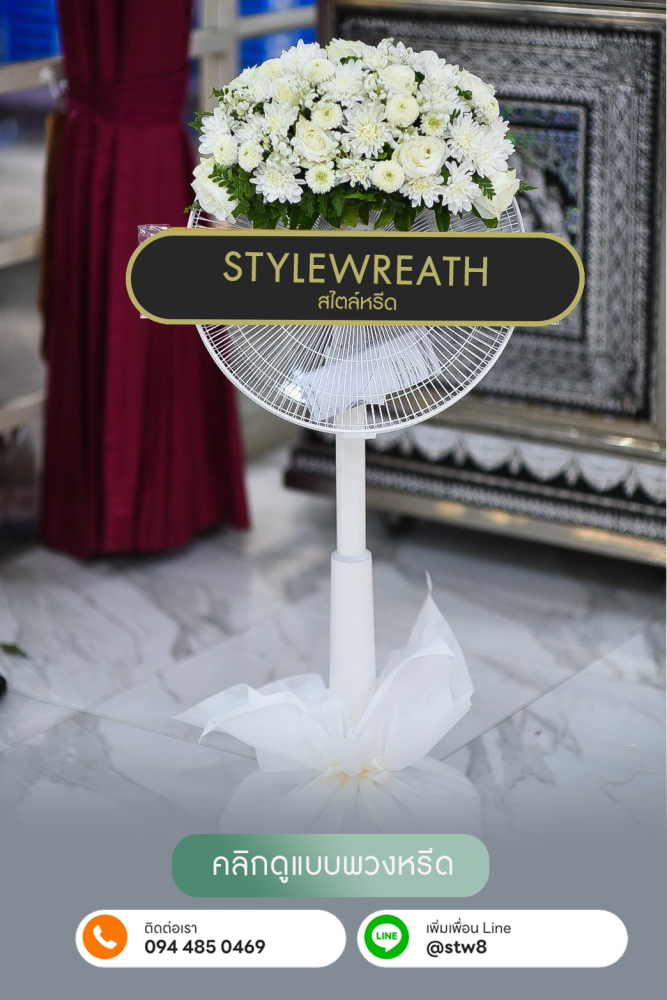 พวงหรีดพัดลม – สามารถนำไปใช้ประโยชน์ต่อได้หลังจบพิธี เช่น บริจาคให้วัดหรือชุมชน