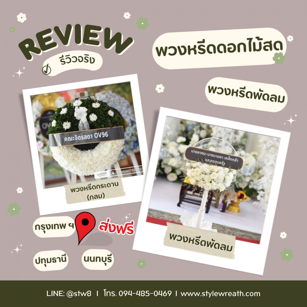 ร้าน stylewreath สไตล์หรีด ให้บริการจัดพวงหรีดคุณภาพ พร้อมจัดส่งตรงถึง วัดดอนเมือง อย่างรวดเร็ว มีแบบพวงหรีดให้เลือกหลากหลาย ทั้งพวงหรีดดอกไม้สด พวงหรีดพัดลม และพวงหรีดเพื่อการทำบุญ
