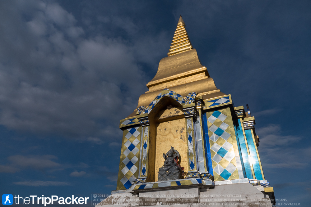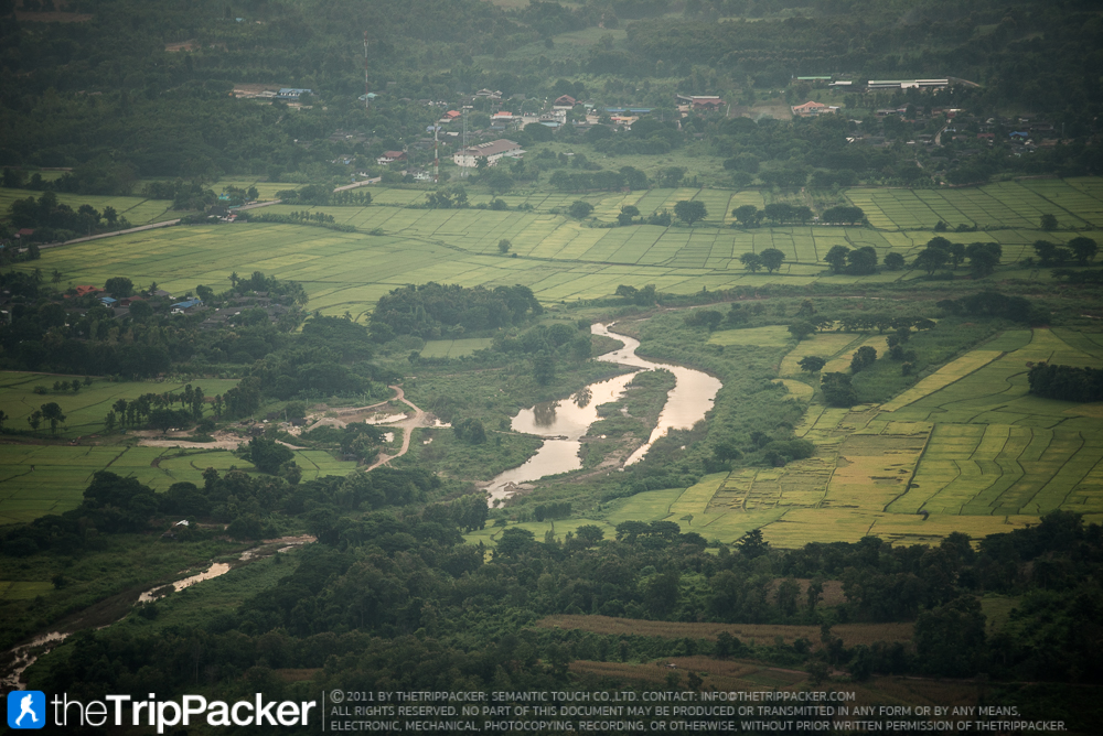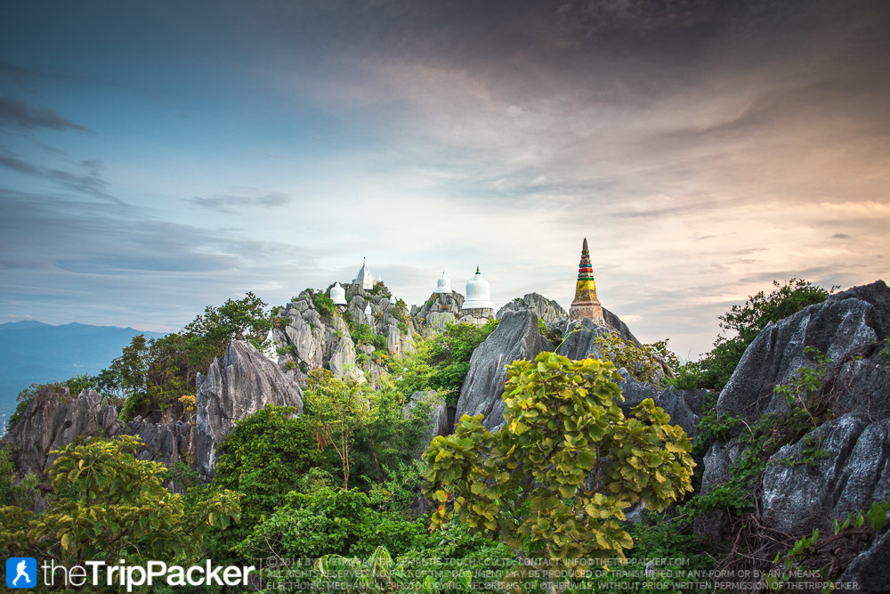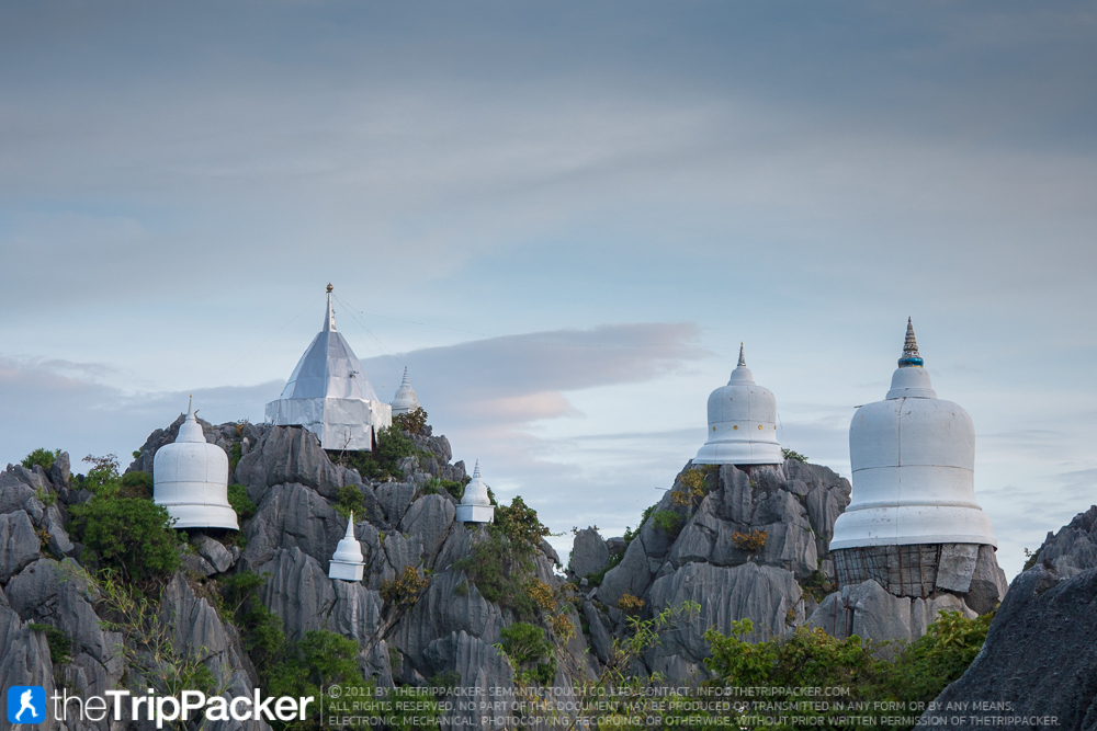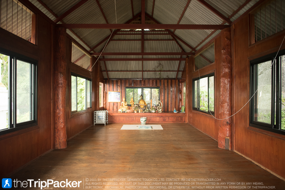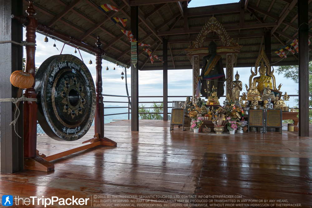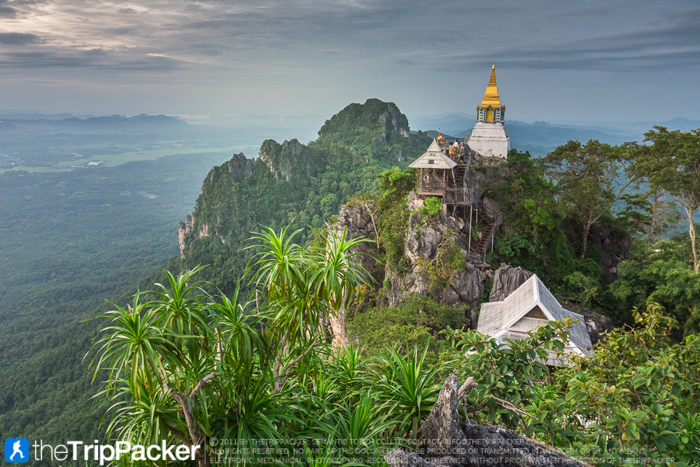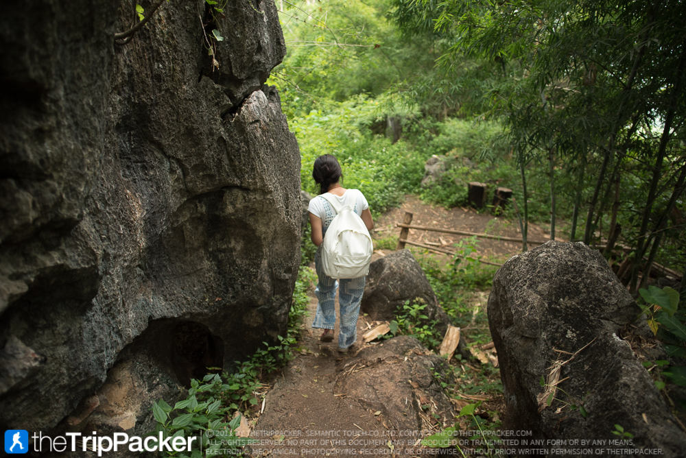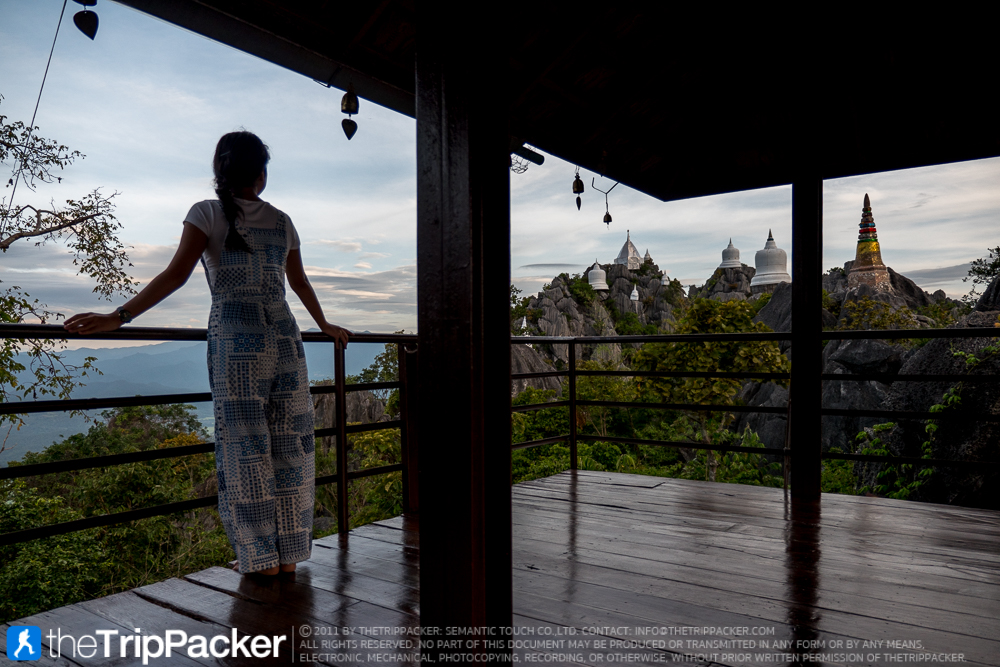 แวะกราบพระพุทธบาทเสร็จแล้ว ถึงคราวต้องออกแรงเดินขึ้นดอยไปสู่ชั้นบนสุด ลัดเลาะขึ้นไปตามภูเขาประมาณ 1 กิโลเมตร โดยทางวัดทำบันไดเหล็กให้เดินขึ้นได้อย่างสะดวก แต่สภาพเส้นทางที่ค่อนข้างชัน ค่อย ๆ เดินไป พักไป ก็จะดีที่สุด ระหว่างทางยังมีจุดชมวิวให้แวะพักให้หายเหนื่อย และแวะชมวิวสวย ๆ กันตลอดทาง หลังจากเดินจากที่ราบขึ้นที่สูงขึ้นเรื่อย ๆ ก็มีเหนื่อยหอบกันบ้าง แต่พอเหลือบไปเห็นป้ายว่าอีกนิดเดียวก็ถึงละก็ ทำให้เรามีแรงฮึดที่จะเดินต่อมาถึงยอดอย่างสบาย ใช้เวลาเดินประมาน 40-60 นาที (แล้วแต่ความฟิตของร่างกายแต่ละคน)