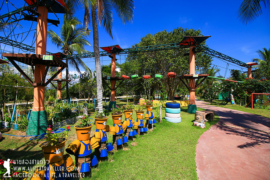 วันนี้เป็นวันเช็คเอาต์ แต่ก่อนหน้านั้นมีอะไรให้ทำอีกเพียบ เริ่มจากออกกำลังกับกิจกรรมแอดเวนเจอร์ บริเวณด้านในรีสอร์ทเป็นสถานที่เล่นฐานผจญภัย มีอุปกรณ์รักษาความปลอดภัยอย่างดี เริ่มจากการโดดหอ ปีนบันไดเชือก ผ่านฐานต่างๆ มาเรื่อย