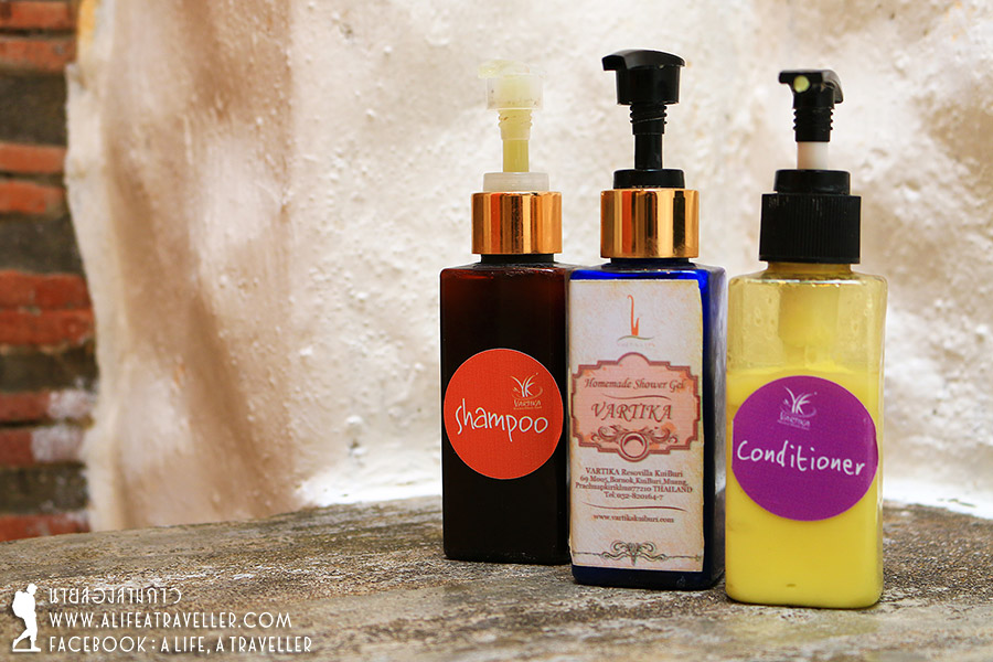 อุปกรณ์ในห้องน้ำครบถ้วนทุกอย่างครับ มาตัวเปล่าเข้าพักได้เลย และที่ถูกใจคือสบู่ แชมพู เป็นผลิตภัณฑ์จากสมุนไพรของที่นี่ผลิตเองโดยตรง หอมมากๆ