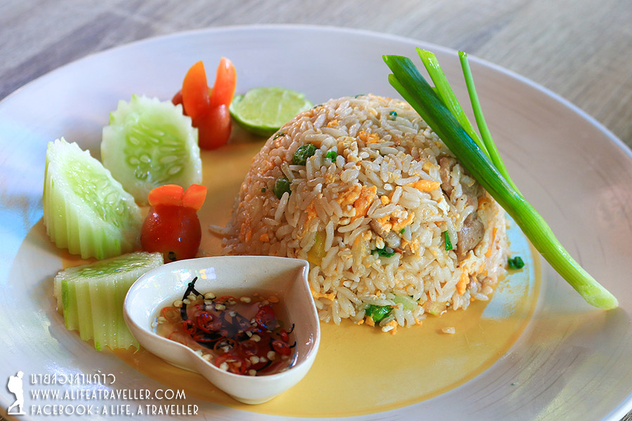 ด้วยห้องพักน้อย รีสอร์ทจึงไม่จัดบุฟเฟ่ต์ แต่ก็เสิร์ฟเสียเต็มที่จนกินกันไม่หมด จานหลักมีให้เลือกทั้งอเมริกันเบรกฟาสต์ ข้าวต้ม ข้าวผัด ผมแนะนำข้าวต้มหมูครับอร่อยดี