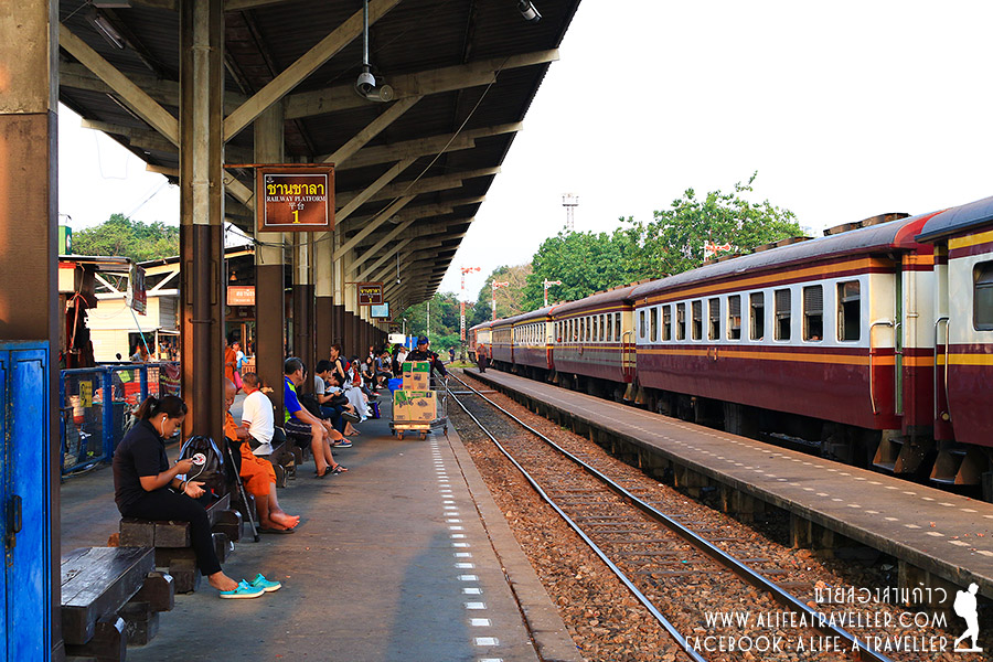 เช็คอินสถานีรถไฟธนบุรี ยื่นบัตรประชาชนรับตั๋วฟรี มีเซอร์ไพรส์ออกตามเวลาเป๊ะ 7.30 น. ปุ๊บล้อเคลื่อนปั๊บ แต่วิ่งไปวิ่งมาสุดท้ายก็สายทีละนิดจนได้ เพราะจอดรอหลีกทางให้รถขบวนด่วนกว่าตามฟอร์ม (ฮา...)