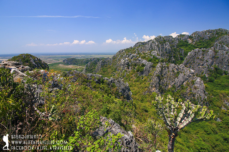 หากหันกลับมาทางฝั่งภูเขา จะเห็นเขาหินปูนลูกน้อยลูกใหญ่เรียงรายสวยงามมากมาย