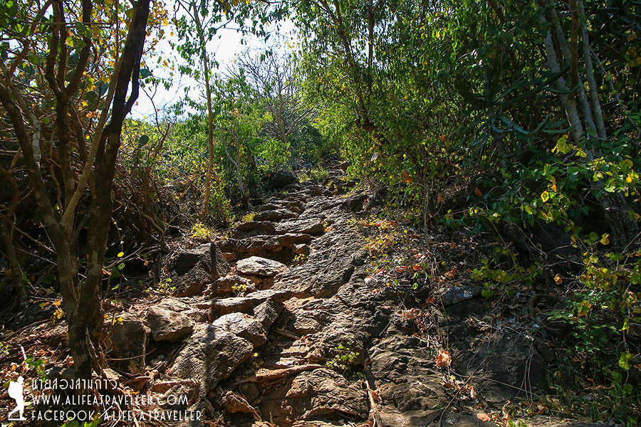 จุดหมายต่อไปของเราหลังอาหารเที่ยงคือถ้ำไทร ต้องเดินขึ้นเขา 300 เมตร จึงถึงปากถ้ำ เป็น 300 เมตร แบบอัพแอนด์อัพ หลังจากโดนตัดแรงมาหนึ่งรอบที่เขาแดง ชักจะมีคนส่งเสียงบ่นแล้ว