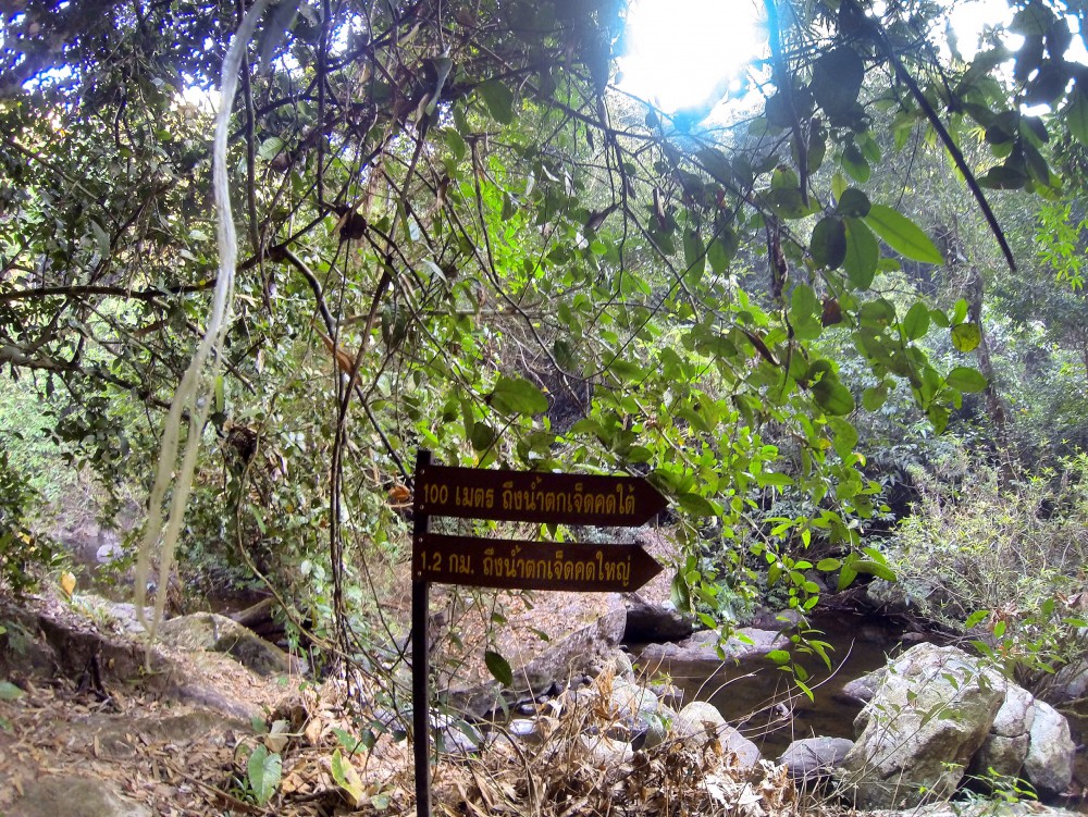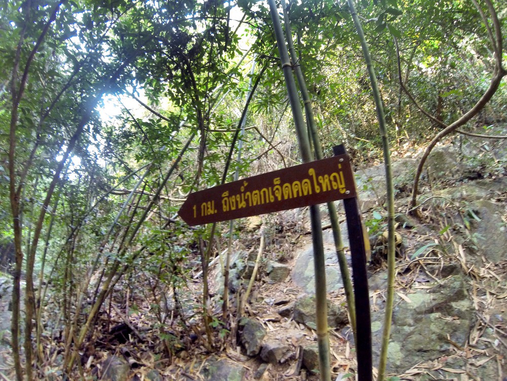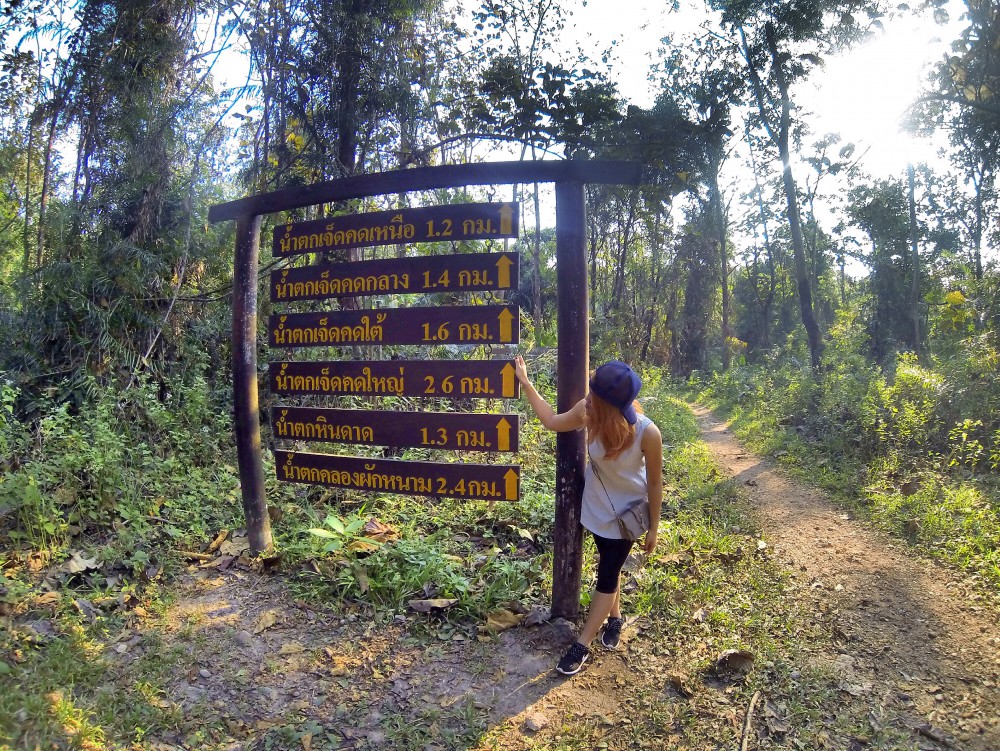 น้ำตกแรกที่เราไปถึง คือ น้ำตกเจ็ดคตเหนือ ก็เดินเหนื่อยเหมือนกันนะคะ ขนาดแค่ 1 โลกว่าๆ ก็น้ำน้อยคะ แต่คนส่วนใหญ่จะหยุดที่นี่ แต่เรา ตั้งเป้าอยากไป เจ็ดคตใหญ่ โวะโวะ 2.6 โล จากป้ายทางเข้า ลุยยคะ