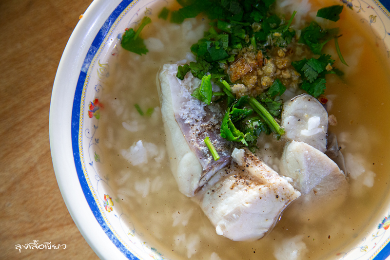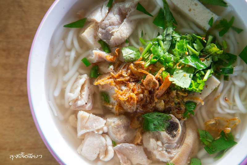 เริ่มที่ข้าวเปียกเส้นหมู มาชามใหญ่ มีทั้งหมูชิ้น หมูยอ