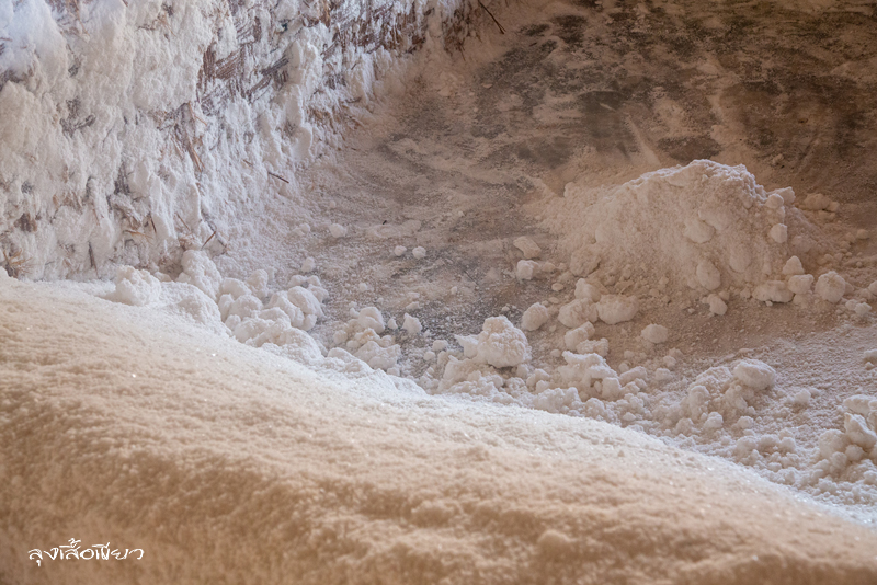 ขอบอกเลยว่าตรงหน้าเตาร้อนมากๆ ผมอยู่ได้แป๊บเดียวก็ต้องถอยแล้ว นับถือคนที่ประกอบอาชีพนี้จริงๆ ครับ พี่วิลัยวรรณเล่าให้ฟังว่า แกจะเริ่มกระบวนการต้มกันตั้งแต่ราวๆ ตี 2 จะเสร็จสิ้นกระบวนการก็ช่วงประมาณ 5 โมงเย็น ผมได้ยินถึงกับต้องร้อง โห้.. แล้วถามแกว่าพี่อยู่กันได้อย่างไรเนี่ย ไม่ร้อนแย่เหรอ แกตอบกลับมาว่า แกไม่ได้อยู่หน้าหม้อตลอด แต่จะสลับสับเปลี่ยนกับสามี แค่มาคอยดูเกลือในหม้อบ้าง คอยมาเติมฟืนบ้าง พอทำเสร็จ แกก็จะนอนพักผ่อนหรือทำกิจกรรมอื่นๆ ต่อได้ หม้อต้มหนึ่งจะได้เกลือประมาณ 2 ตัน ได้ค่าแรงตามจำนวนเกลือ ตกเฉลี่ยครอบครัวหนึ่งประมาณ 600 บาท/วันครับ