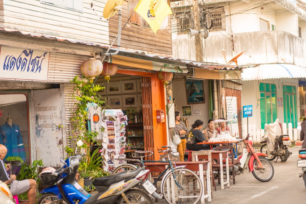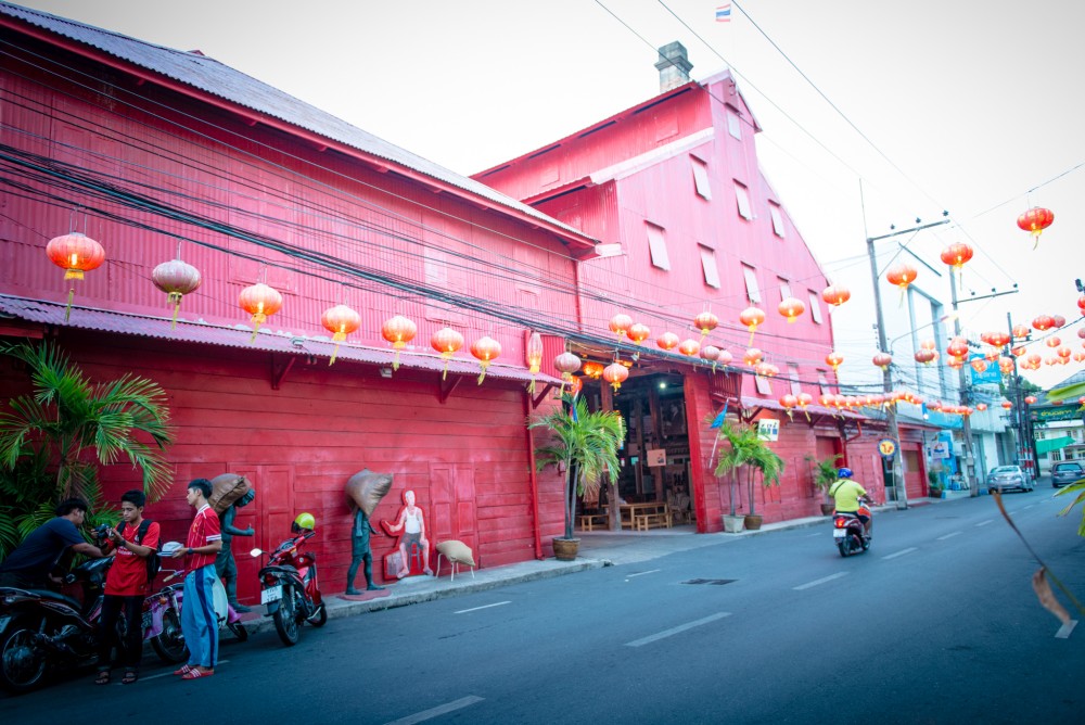 หลังจากจากลงมาไปต่อกันที่ << ย่านเมืองเก่าสงขลา >> มีถนนหลายสาย หลักๆ ที่เดินคือ ถนนนางงาม ถนนนครใน ถนนนครนอก อาคารบ้านเรือนยังคงความงดงาม บ้านไม้เก่า ครึ่งปูนครึ่งไม้ ห้องแถวไม้แบบจีน ตึกคลาสสิกสไตล์ชิโนโปตุกีส แต่จุดสำคัญที่มาแล้วต้องมาแวะ คือ ภาพวาดศิลปะ Street art ซึ่งถูกวาดลงบนผนังอาคารเก่าอายุกว่า 98 ปี ที่ทุกคนมาถึงแล้วต้องมาถ่ายรูปอย่างแน่นอน นอกจากเดินชมเมืองเก่าแล้ว ยังมีอาหารอร่อยๆ ขายอยู่ 2 ข้างทาง แล้วแต่เราจะเลือกชิมเลยค่ะ ^^ อีกที่ ที่ใกล้ๆ กัน << หับ โห้ หิ้น >> หรือโรงสีแดง ก่อตั้งโดยขุนราชกิจจารี (จุ่นเลี่ยง ลิ้มเสาวพฤกษ์) ในปี พ.ศ. 2457 ต่อมาอีก 14 ปี หลานของท่านคือ คุณสุชาติ รัตนปราการ ได้ซื้อกิจการต่อทั้งหมด และพัฒนาโรงสีข้าวโดยเปลี่ยนมาใช้เครื่องยนต์พลังไอน้ำ ใช้แกลบเป็นเชื้อเพลิง ชื่อโรงสี “หับ โห้ หิ้น” เป็นภาษาฮกเกี้ยน หมายถึง สามัคคี กลมเกลียวและเจริญรุ่งเรือง ในสมัยสงครามโลกครั้งที่ 2 ญี่ปุ่นยึดครองสงขลา และใช้โรงสีแดงเป็นคลังเก็บเวชภัณฑ์ หลังสงครามได้เลิกกิจการโรงสีข้าว เปลี่ยนเป็นโกดังเก็บยางพารา เพื่อส่งออก และท่าเทียบเรือประมง ปัจจุบันเป็นที่ตั้งของภาคีคนรักเมืองสงขลาสมาคม (ขอบคุณข้อมูล จาก http://songkhlacityskru.blogspot.com/2015/10/blog-post_55.html )