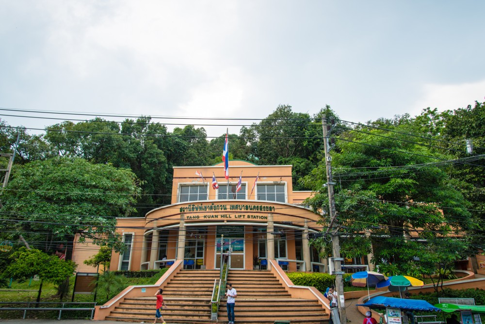 วันที่สาม เราจะไปฝั่งสงขลากัน เริ่มที่แรก << เขาตังกวน >> หรือสถานีลิฟท์เขาตังกวน เทศบาลนครสงขลา ตั้งอยู่ในเขตเทศบาลเมืองสงขลามีความสูงจากระดับน้ำทะเลประมาณ 105 เมตร บนยอดเขาตังกวนเป็นที่ประดิษฐานโบราณสถานสำคัญ ประกอบด้วย พระเจดีย์หลวง พลับพลาที่ประทับ รัชกาลที่ 4 และประภาคาร เขาตังกวนอยู่ในตัวเมืองสงขลาใกล้กับหาดสมิหลา การขึ้นสู่ยอดเขาตังกวน มี 2 วิธี คือ ขึ้นลิฟท์โดยสารจากจุดบริการลิฟท์ ผู้ใหญ่คนละ 30 บาท เด็ก 20 บาท และขึ้นโดยการเดินขึ้นบันไดฝั่งตรงตะวันตก ซึ่งเป็นฝั่งตรงข้ามลิฟท์โดยสาร ตลอดระยะทางมีบันไดหิน สลับกับจุดพักและจุดชมวิว เป็นช่วง ๆ ข้อดีคือจะสามารถชมมุมมอง ได้หลายมุม หลายระดับ ณ บริเวณบันไดนาค ถึงวิหารแดงจำนวน 145 ขั้น แต่เลือกขึ้นลิฟท์คร๊า...555+++ (ขอบคุณข้อมูล จาก http://hatyaiairportthai.com/th/popular-destinations/83/khao-tang-kuan )