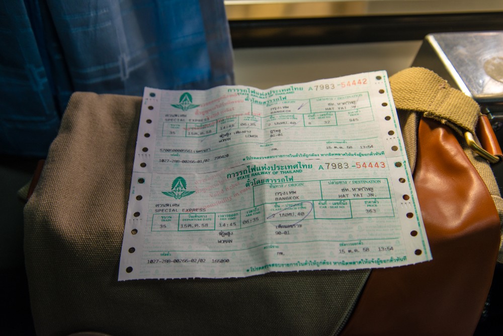 มาถึงแล้วไปซื้อตั๋วกันเลย เราจองแบบรถนอน *ด่วนพิเศษ* สาย 35 หัวลำโพง - บัตเตอร์เวอร์ธ (ลงปลายทางหาดใหญ่) เลือก 2 เตียง เตียงบน และเตียงล่าง ราคาผู้ใหญ่ 945.- บาท ราคาเด็ก 363.- บาท จะลด 50% เตียงล่างจะราคาแพงกว่าเตียงบน แต่ถ้าใครไม่ชอบสุงสิง ไม่อยากยุ่งกับคนผู้มากแนะนำแบบห้องส่วนตัว ไปคนเดียวมีราคาเหมาห้องด้วย เริ่ดดด...ที่นั่งแบบที่เลือกตอนกลางวันจะเป็นที่นั่งคนละฝั่ง แต่ตอนกลางคืนจะเปลี่ยนเป็นที่นอนให้ เราจอง 2 ที่ ไม่ได้นั่งกับคนอื่น หลังจากได้ตั๋วแล้ว หาอะไรรองท้องก่อน เดินขึ้นไปชั้น 2 เลยมีร้าน BLACK CANYON อยู่ ทานเสร็จแล้วรีบขึ้นเลยค่ะ กลัวไม่ทันเพราะรถไฟออกตรงเวลามาก 14.45 น. เริ่มออกจากหัวลำโพง เที่ยวที่เรานั่งเป็นรถด่วนพิเศษ จะแวะเฉพาะสถานีหลักเท่านั้น....