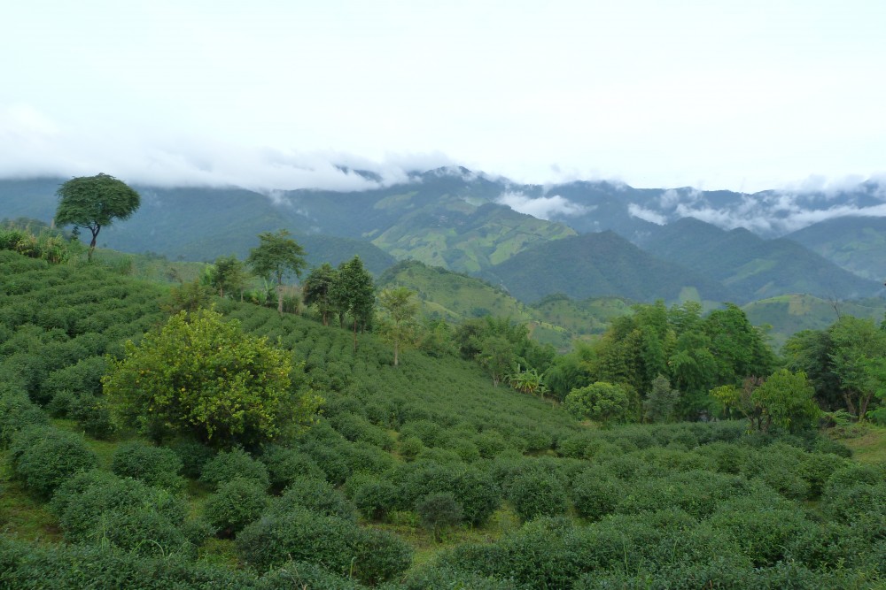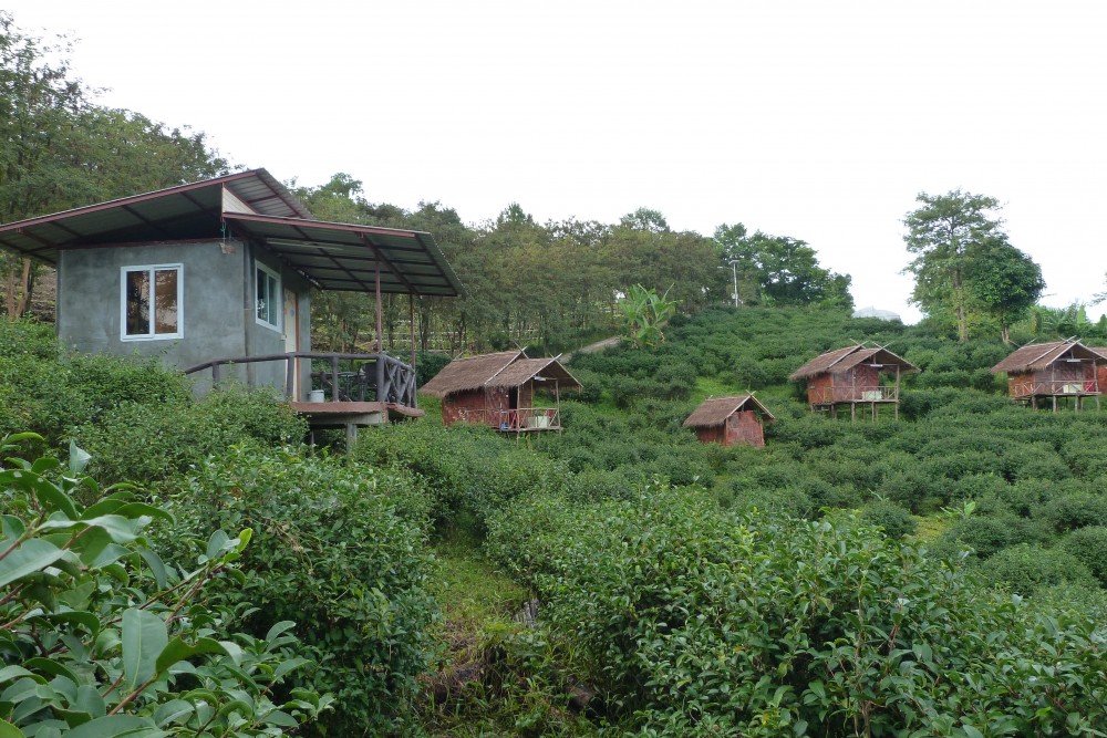 ตื่นเช้าพร้อมสายฝนโปรยปราย มีหมอกจางๆหน้าที่พัก