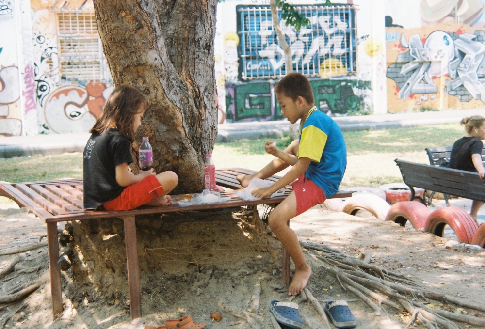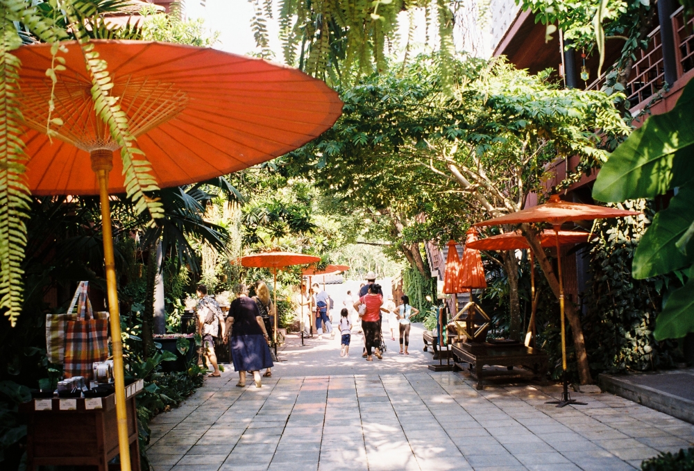 อากาศร้อนช่วงเดือนเมษาทำเอาเหงื่อตก แทนที่จะนอนตากแอร์อยู่บ้าน เราเลือกที่จะออกไปตากแดดแทน นัดกับน้องที่สนิทแต่โดนเท เลยเบนเข็มไปหาอะไรทำ ลากกล้องฟิล์มไปอ้อละเหยลอยชายแถวๆ ราชเทวี ยันสนามกีฬาแทน เริ่มต้นด้วยการนั่งบีทีเอสจากจตุจักรมาลงที่ราชเทวี จุดหมายอยู่ที่สวนเฉลิมหล้า นั่งรถผ่านมาหลายสิบครั้งเพ่งมีโอกาสได้แวะก็วันนี้ แดดแรงจนเหงื่อหยด เราใช้กล้อง Minolta ฟิล์ม35 KodakColorPlus200 จุดหมายอยู่ห่างจากบีทีเอสนิดเดียว ใกล้ๆสะพานหัวช้าง เพราะแดดแรงมากช่วงไปเลยไม่มีคนเท่าไหร่ ถ่ายรูปได้จัดเต็ม