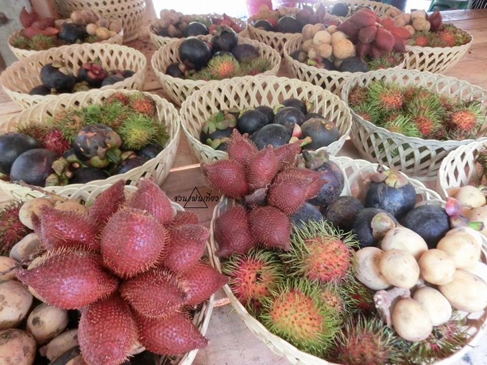ทางสวนลุงทองใบจะจัดเตรียมชุดผลไม้ไว้ให้สำหรับนักท่องเที่ยวเรียบร้อยแล้วนะคะทีนี้เราก็สามารถลุกเดินไปเลือกได้เลยว่าเราอยากทานอะไรก็หยิบมานั่งทานได้เลยค่ะ ผลไม้หลักๆที่ทางสวนเตรียมไว้ก็จะเป็นทุเรียน เงาะ มังคุด สละ แต่ส่วนมากนักท่องเที่ยวที่มาจะเน้นทานทุเรียนกันซะส่วนใหญ่รวมถึงโต๊ะเราด้วยค่ะ555555