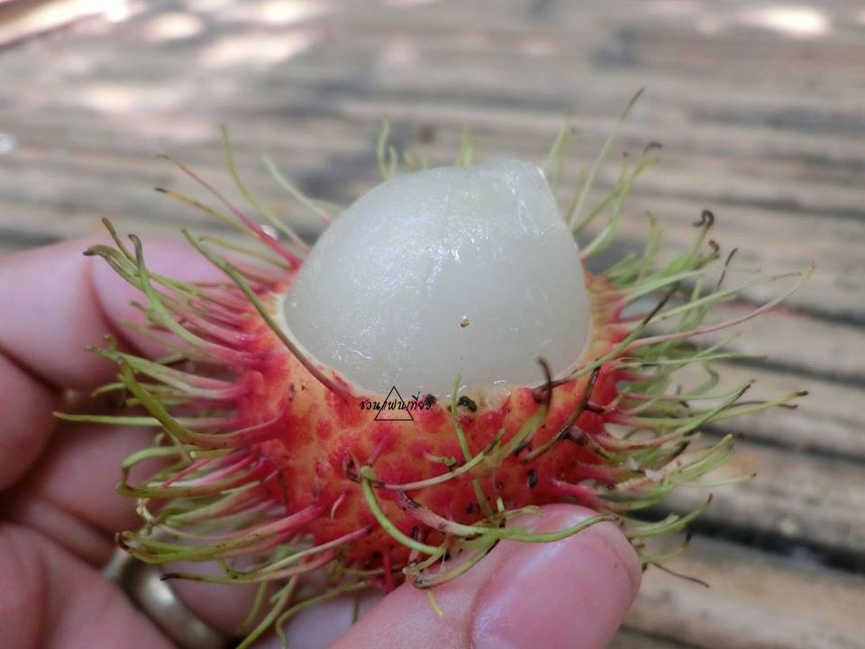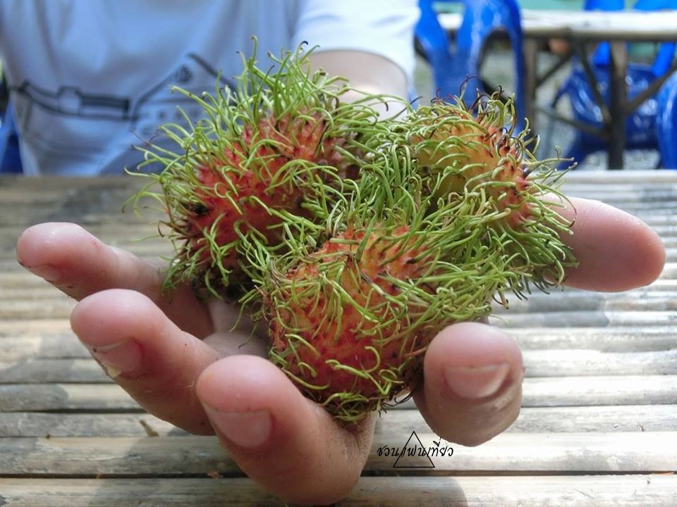 เมื่อตอนที่เรานั่งรถอีแต๊กชมสวนเงาะยังเป็นสีเขียวอยู่บนต้นอยู่เลย พอมาตรงนี้กลายเป็นสีแดงให้พวกเรากินได้แล้วอ่า >0<