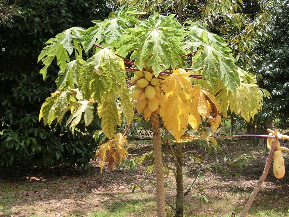 มะละกอทอง อันนี้แปลกมากค่ะที่ว่าแปลกเพราะว่าเราไม่เคยเห็น555เพิ่งจะเคยเห็นก็คราวนี้แหละค่ะ ลักษณะต้นก็จะคล้ายๆกับต้นมะละกอทั่วไปแต่ผลของมันจะเป็นสีเหลืองอมทองจะต่างจากต้นมะละกอที่เราเคยปลูกกันนะคะ