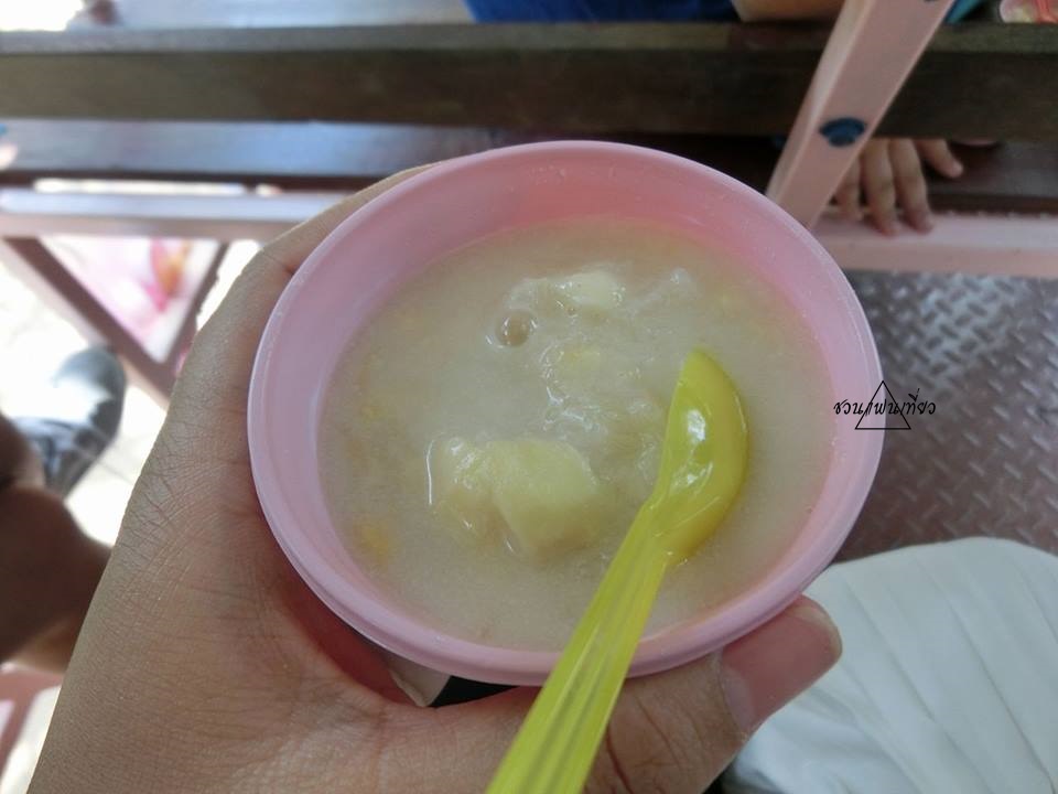 อันนี้เป็นเมนูต้อนรับจากทางสวนลุงทองใบ เมนูแรกจะเป็นข้าวเหนียวทุเรียนที่จากสวนได้นำเอาเนื้อทุเรียนมาแปลรูปให้เราได้ทานกัน รสชาติก็จะออกไปทางหวานนิดหน่อยค่ะแต่จะเป็นหวานจากเนื้อทุเรียนที่ได้ความมันของกะทิมาผสมทานแล้วถือว่ารสชาติใช้ได้เลยค่ะ^^