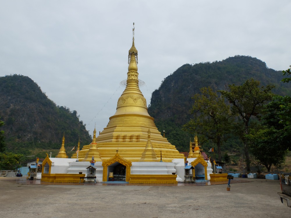 จากนั้นเราก็ดูเเผนที่เเล้วกะจะเดินไปเจดีย์ทองเหมือนเดิม เเต่รู้สึกว่ามันไกลมากเเล้วก็เปลี่ยวด้วย เลยตัดสินใจกันว่าวินก็ได้ ก็บอกพี่เขาไป โชคดีที่พี่รู้ไทยนิดหน่อย  ย้ำว่านิดหน่อยจริงๆ เพราะพอขึ้นรถพี่เขาไปเเล้วเราก็ถามนั่นนี่ไปพี่เขาก็ยิ้มอย่างเดียวเหมือนตอบไม่ได้  ฟังไม่รู้งี้  ดีที่ตัดสินใจนั่งมอตไซต์เพราะมันเหมือนทางขึ้นเขาเหมือนกัน ก็ไม่ได้ใกล้  ทีเเรกพี่เขาบอกคนละ 50 เเต่เราต่อพี่เขาไปคนละ 30 พี่เขาก็ให้  ใจดีจุง : D