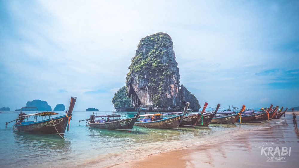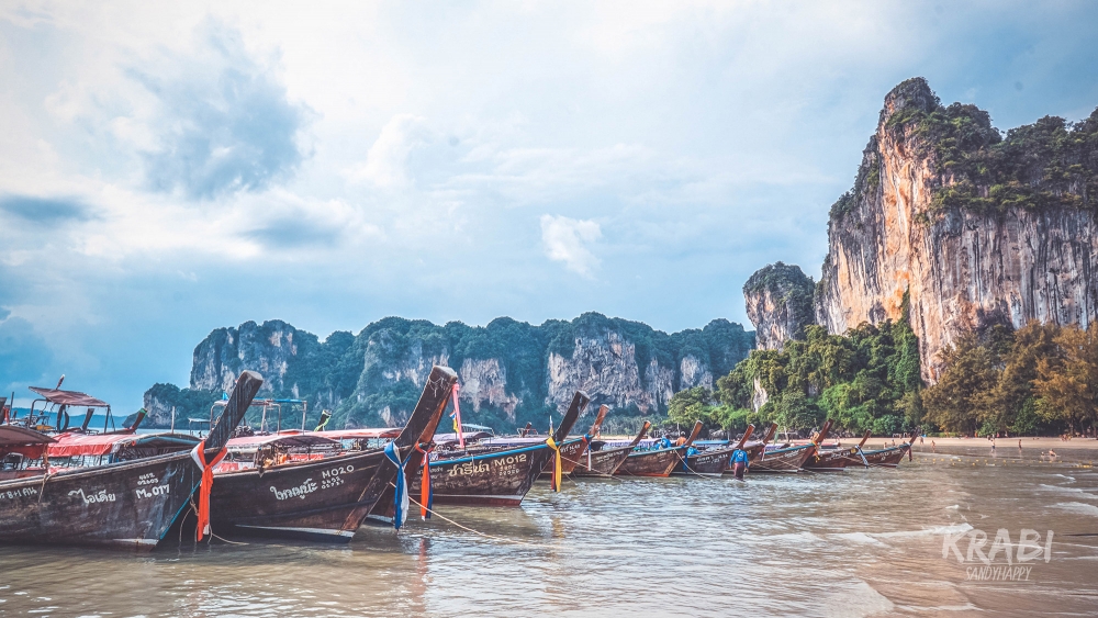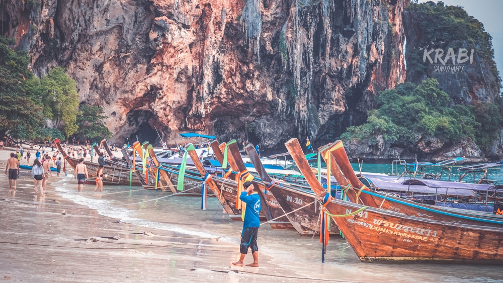 เรือหางยาวจากท่าเรืออ่าวนาง จะมาขึ้นฝั่งที่ไร่เลย์ตะวันตกค่ะ ขากลับเราก็มาขึ้นเรือที่ชายหาดแห่งนี้เช่นกัน
