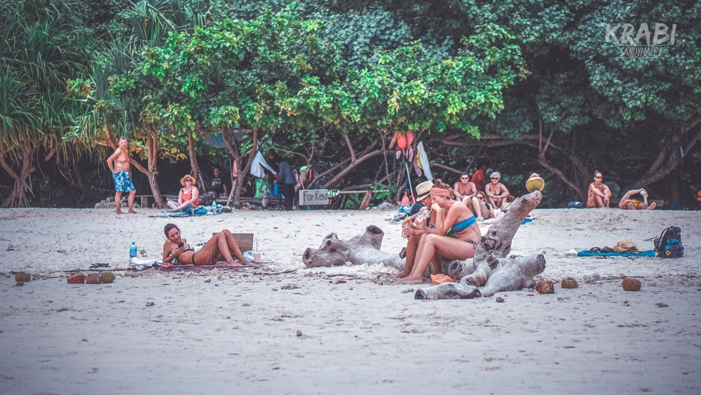 เราหาที่นั่งหลบแดดใต้ต้นไม้ กินข้าวกลางวัน จิบเบียร์เย็นๆ ที่ซื้อมาด้วยจากบนฝั่ง ชิลๆไปค่ะ ก็คนไทยนี่นะกลัวแดดกลัวดำ ไม่ได้เดินทางข้ามน้ำข้ามทะเลมาหาแดดแรงๆแบบฝรั่งเค้า