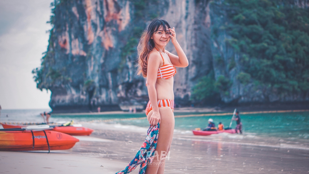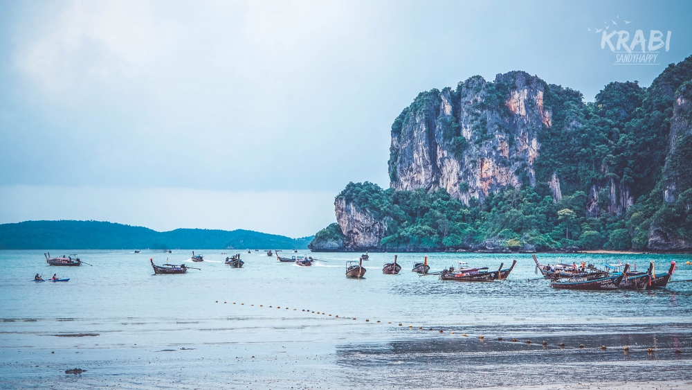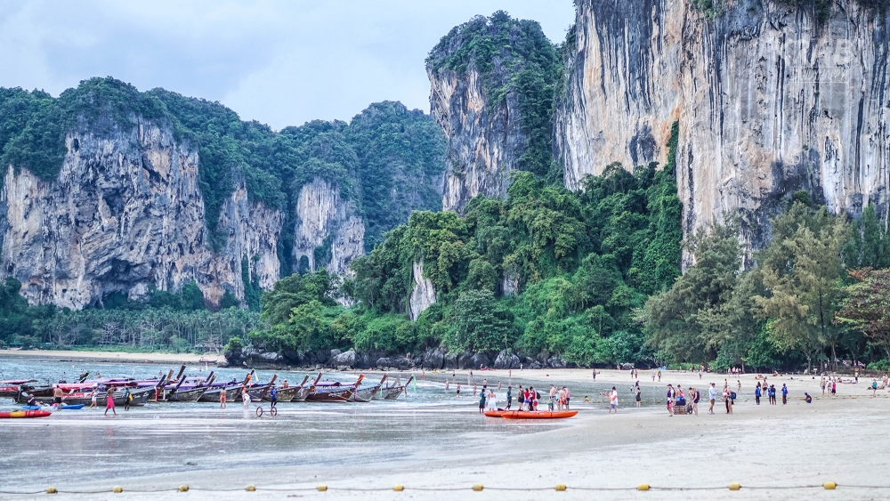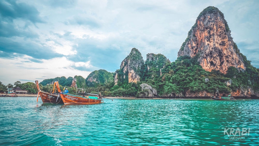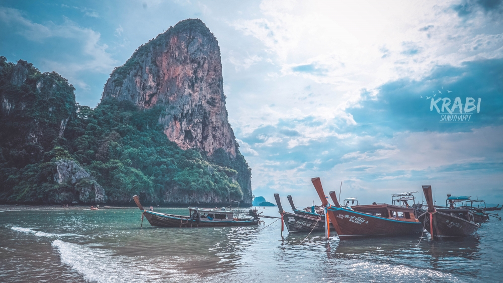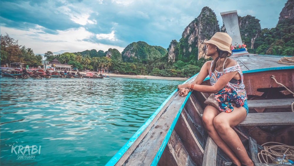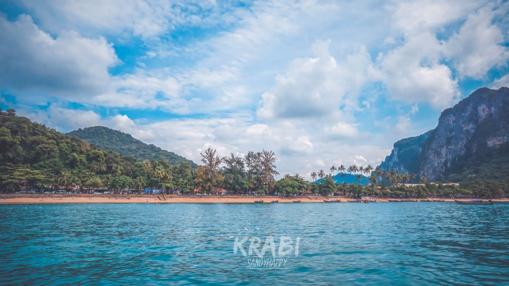ชายหาดอ่าวนาง จากมุมมองบนเรือ มุ่งหน้าสู่หาดไร่เลย์